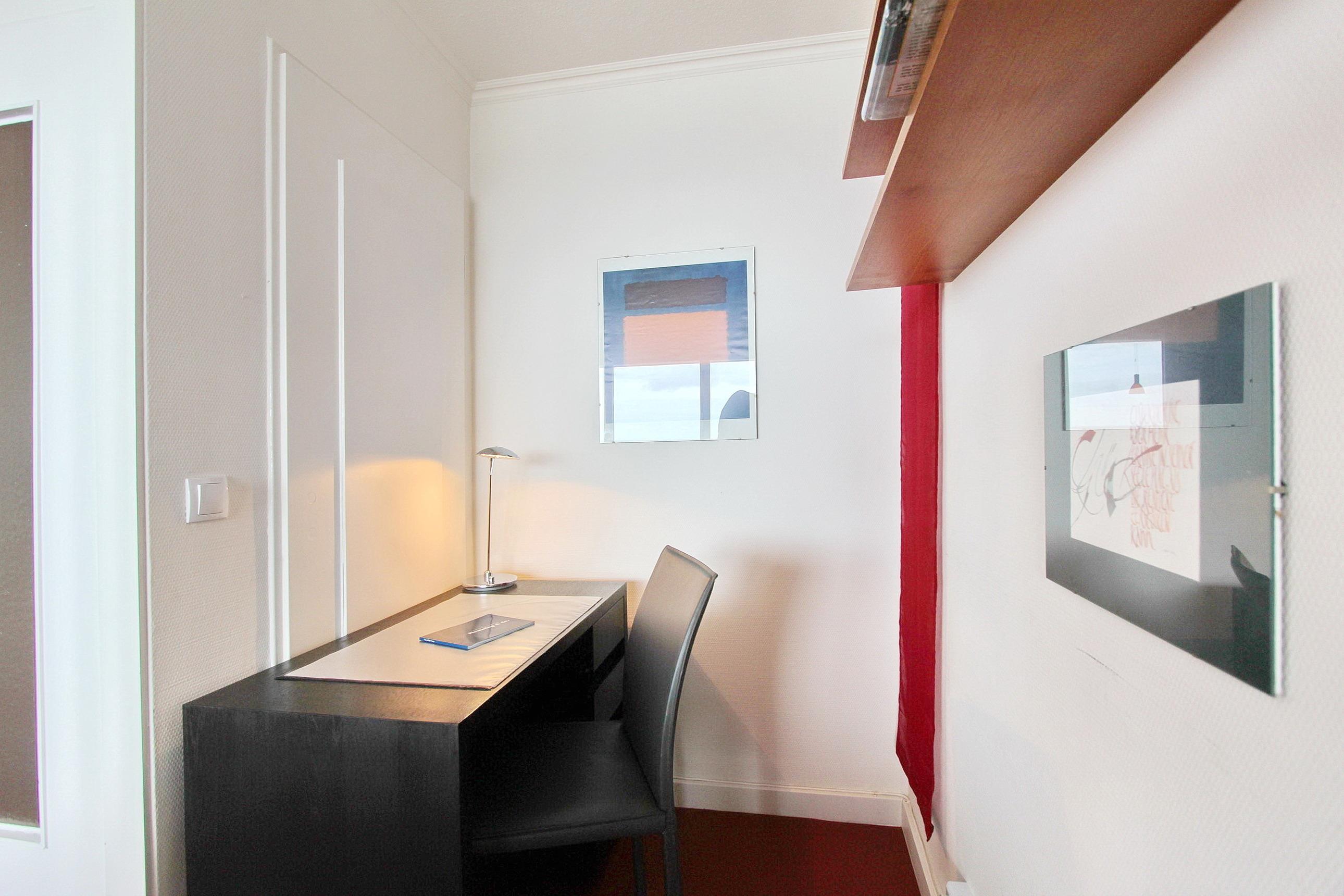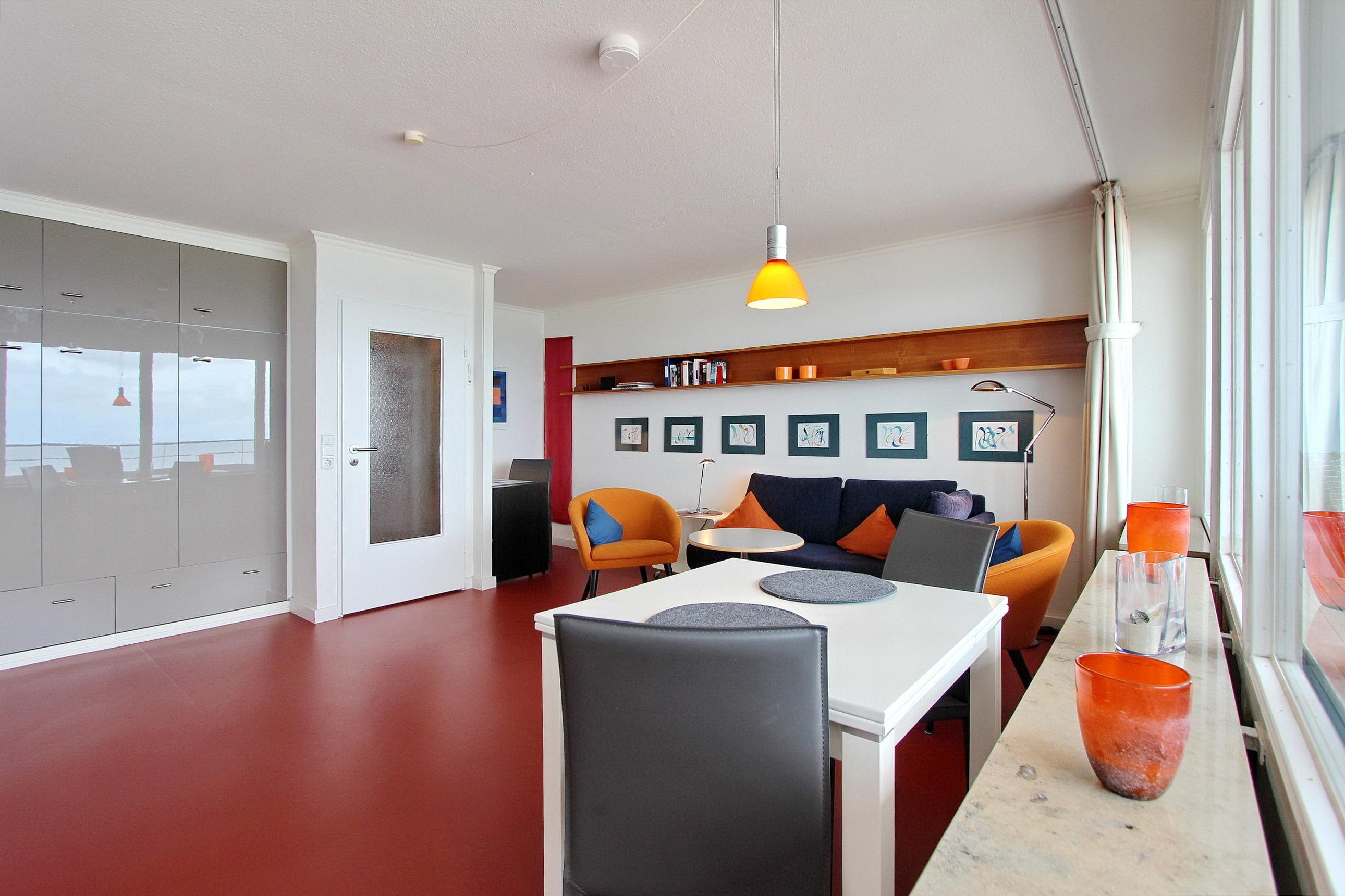 Diese farbenfrohe Wohnung in der 4. Etage im Haus Metropol - zur Seeseite gelegen - bietet einen herrlichen, weiten Blick über den Strand und die Nordsee. Sie ist hell und freundlich eingerichtet und hat einen vorgelagerten Westbalkon mit Balkonmöbeln. Der kombinierte Wohn-Schlafraum verfügt über einen Linoleum Boden, ein Doppelschrankbett einen Essplatz am Fenster und eine Couch mit 2 Sesseln. Ein kleiner Schreibtisch für Ihre Arbeiten, z.B. im Home-Office, steht für Sie bereit. Das Bad verfügt über eine geräumige Duschkabine mit Haltegriff und Duschhocker. In der Einbauküche, ausgestattet mit 4 Platten Cerankochfeld, Geschirrspüler, Backofen und Mikrowelle, können Sie bequem kleine Mahlzeiten zubereiten.
