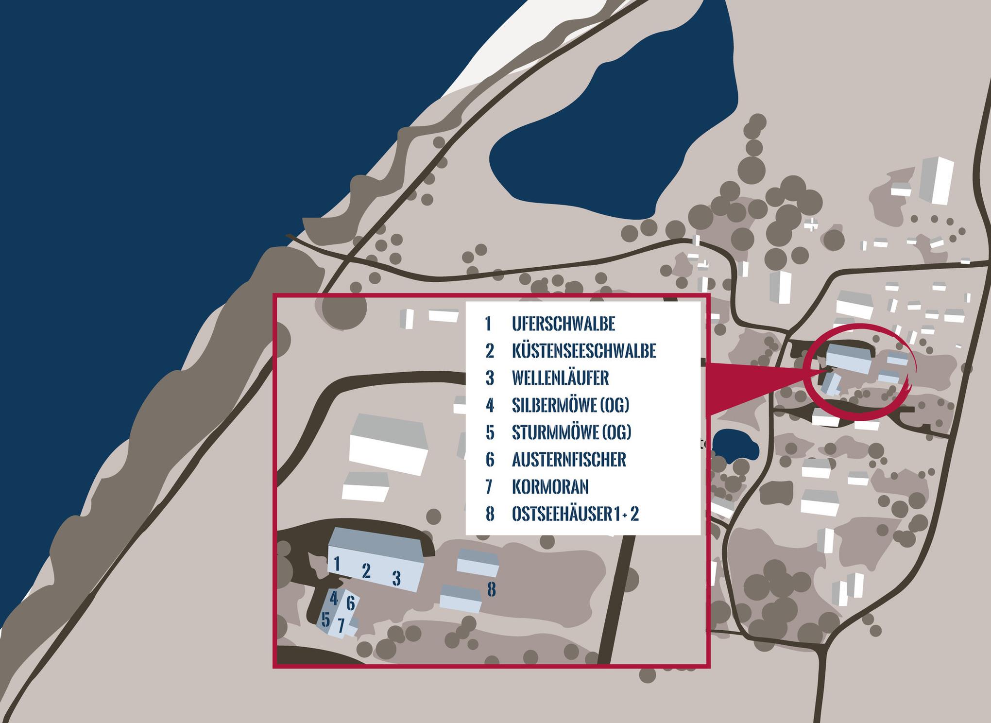 Die Ostseehäuser liegen auf einem großzügigen Gelände mit hohen Hecken und alten Baumbeständen auf 10000 Quadratmeter Fläche im Grünen. Hier erfährt man die Ruhe, nach der man sich im Alltag so oft sehnt.