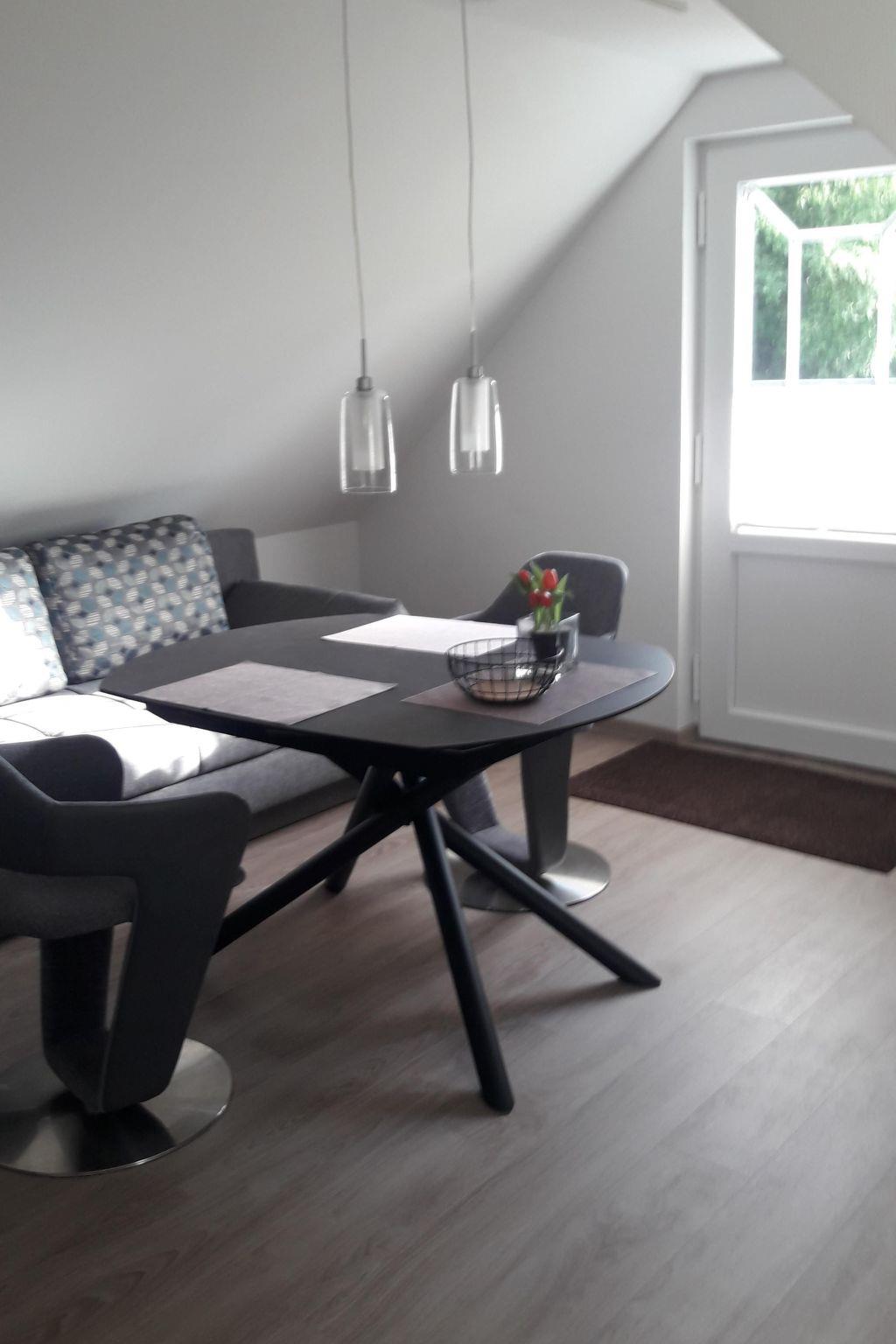 1.living area with kitchenette with cooker, oven, microwave, refrigerator, dishwasher, coffee maker, kettle, crockery etc. for 4 people, TV, W - Lan2.bedroom with double bed and built-in wardrobe3.bathroom with shower, sink, toilet and cupboards, hairdryer4.hallway area5.separate entrance via a spiral staircase6.bed linen and towels availableEverything as good as new!