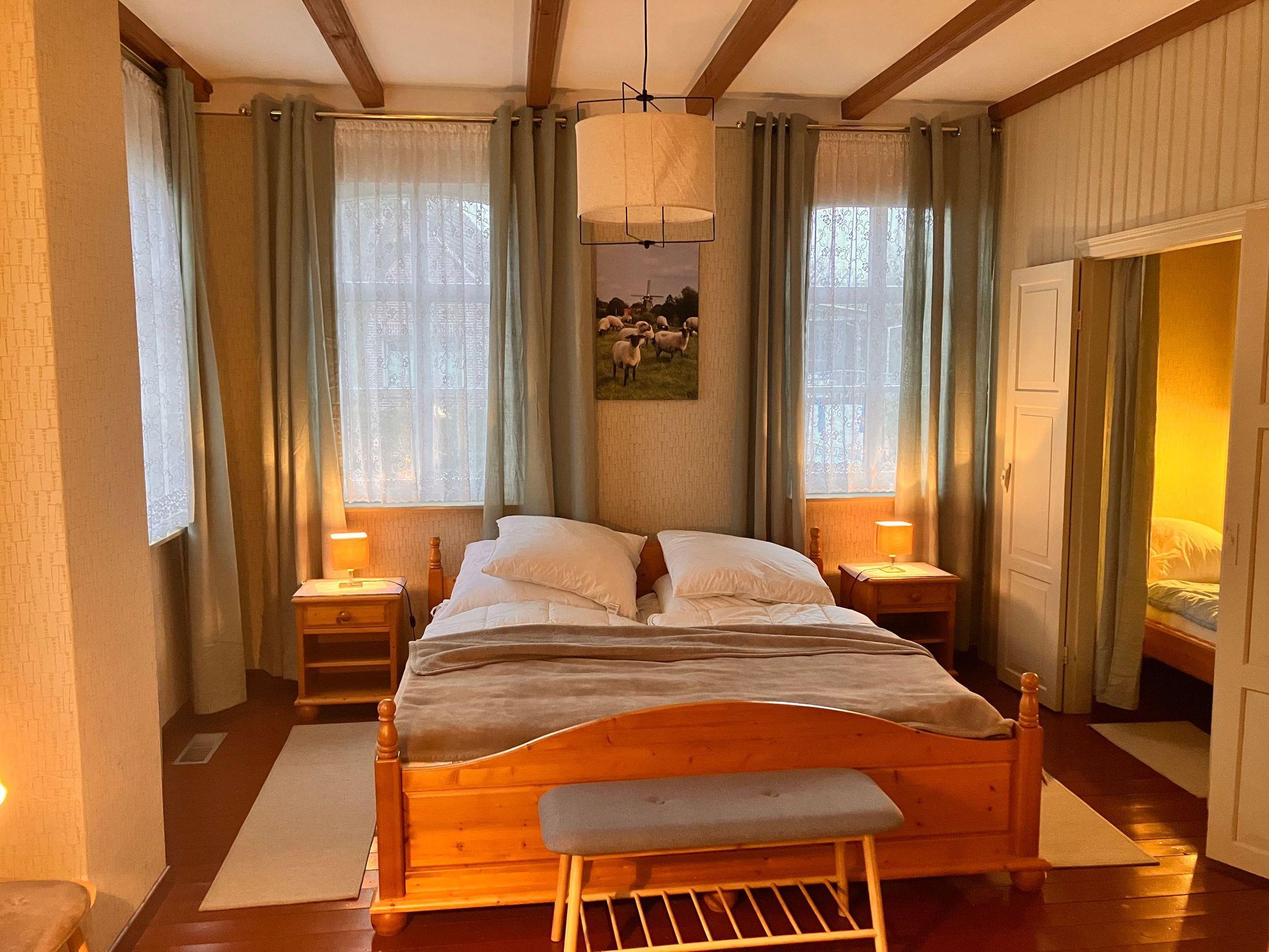 Wohnen Sie in Ihrem Urlaub in gemütlicher ostfriesischer Atmosphäre. Dieses bietet Ihnen das wieder aufgebaute ostfriesische Gulfhaus in dem idyllischen Emsdorf Mitling-Mark. Komplett eingerichtete Wohnung mit einem Wohnzimmer, einem Schlafzimmer mit Doppelbett sowie zwei Butzenbetten, Küche mit Geschirrspülmaschine und Essecke, DU/WC, TV und WLAN. Ideal für Angler (Ems ca. 200 m, Meyer-Werft Schiffsüberführungen, Angelsee ca. 1,5 Km) . Direkt an der Fehnroute. Inliner-Strecke.