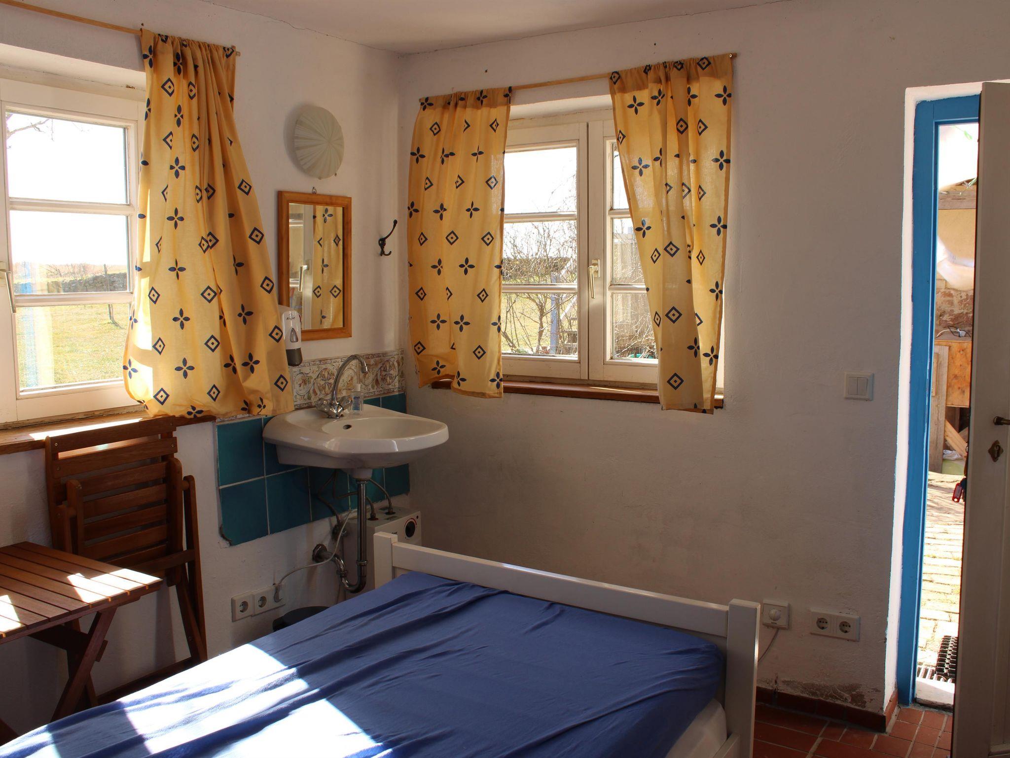 Das Gästezimmer ist mit einem Einzelbett ausgestattet und bietet durch die einfache, funktionale Einrichtung eine angenehme Wohlfühlatmosphäre. Gartenmöbel stehen ebenfalls zur Verfügung und laden dazu ein, die Zeit draußen in der Natur zu genießen.