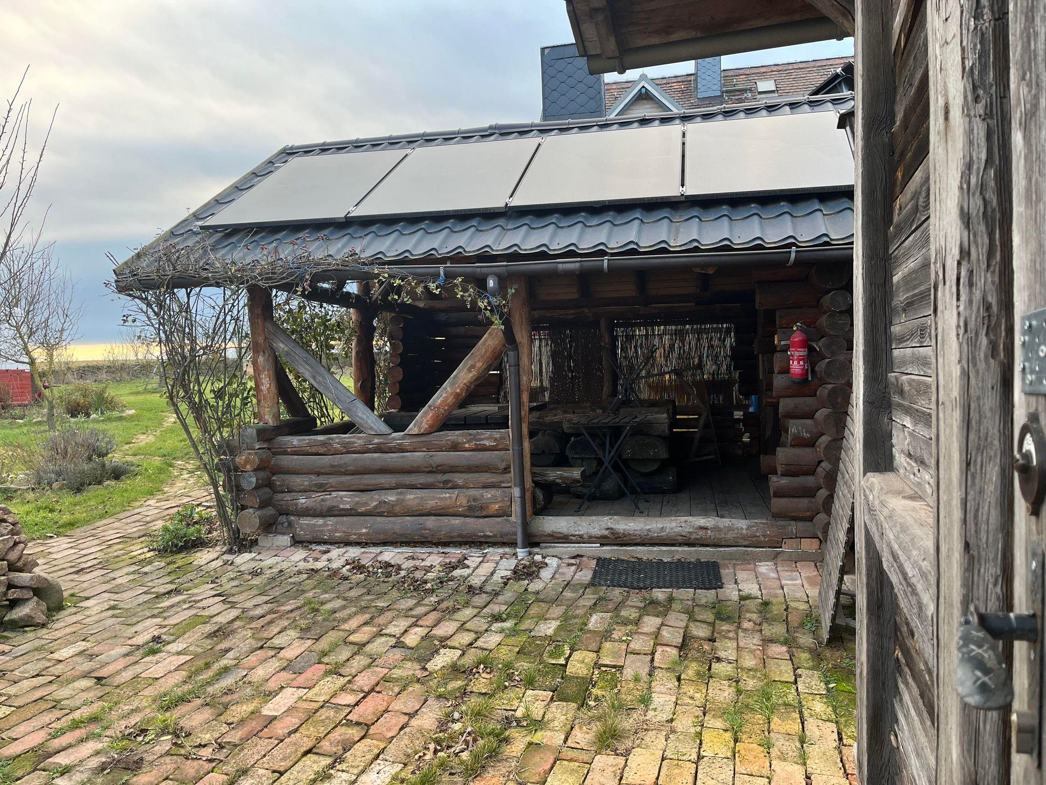 Zur Blockhütte gehören außerdem eine eigene überdachte Terrasse sowie Garten und Gartenmöbel. Dadurch finden auch größere Gruppen ausreichend Platz – unabhängig vom Wetter. Die überdachte Terrasse ist ideal für gesellige Abende, lange Tafeln oder entspannte Pausen im Freien.