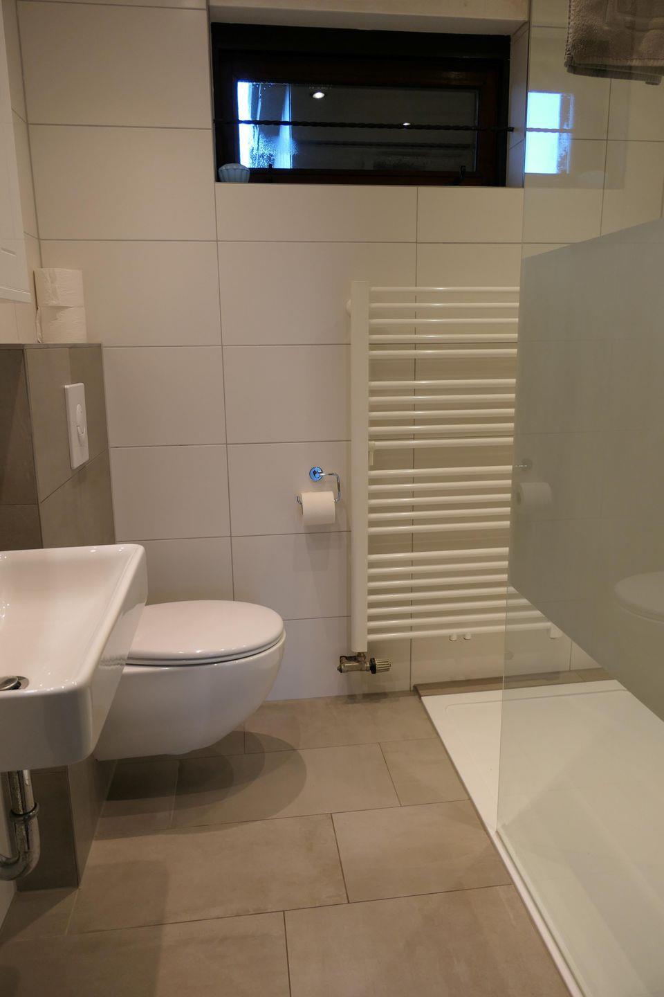 Mit einem modernen Badezimmer, das mit einer bodengleichen Dusche ausgestattet ist, wird auch der Komfort großgeschrieben. Hier können Sie nach einem aktiven Tag in der Natur entspannen.