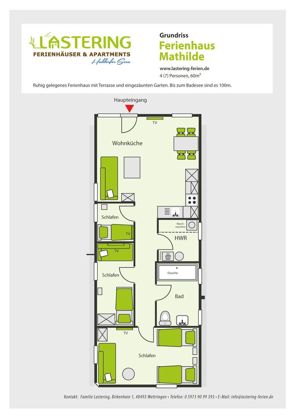 Willkommen in dem charmanten Ferienhaus "Mathilde" in Wettringen – dem perfekten Rückzugsort für Familien, Freunde und Paare, die eine Auszeit in der Natur suchen. Mit großzügigen 60 m² bietet diese moderne Unterkunft Platz für bis zu 7 Personen und sorgt somit für einen unvergesslichen Aufenthalt, egal ob für einen Wochenendtrip oder einen längeren Urlaub.