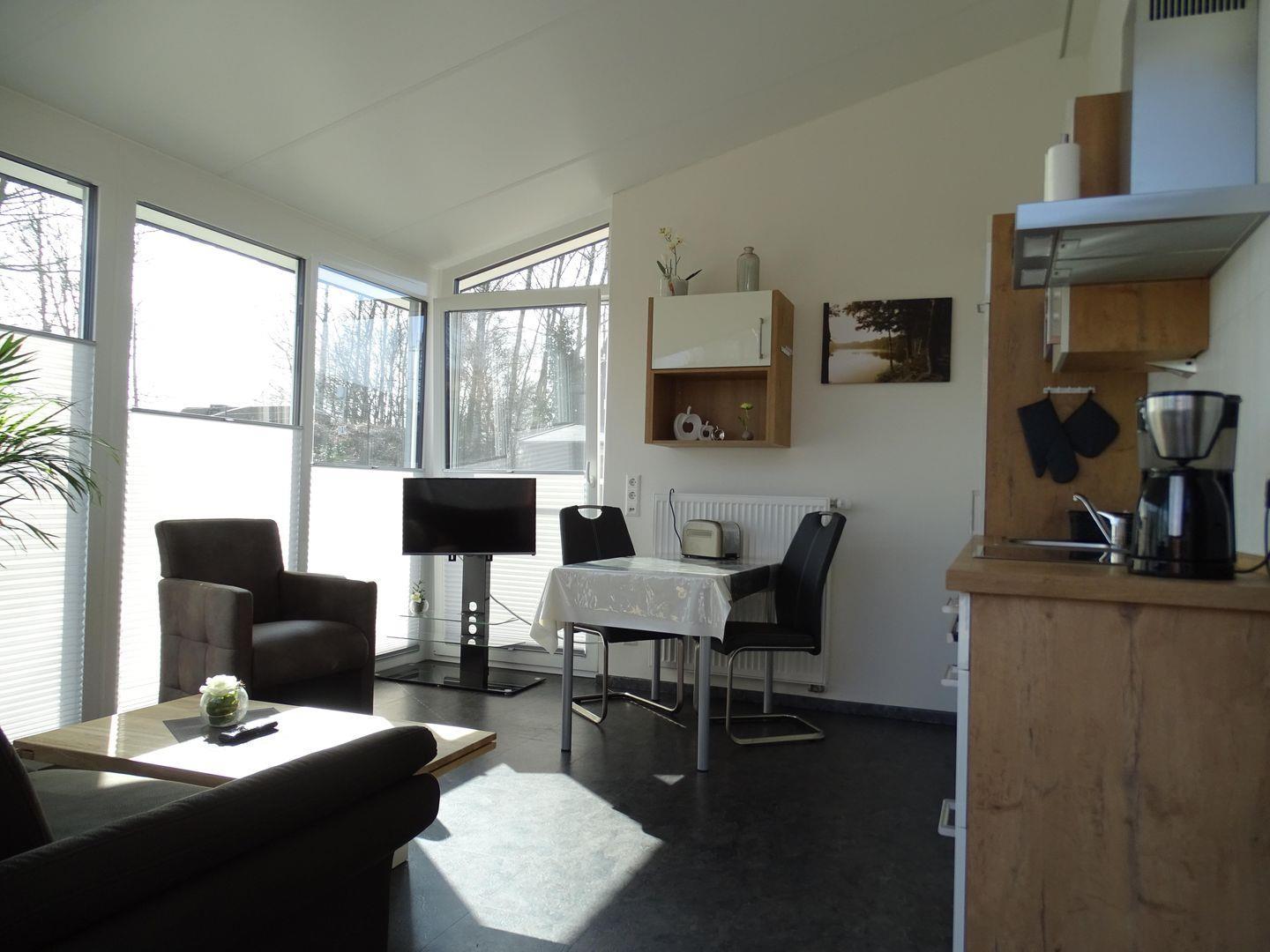 Die moderne und ansprechend gestaltete Unterkunft verfügt über ein Schlafzimmer mit einem komfortablen Bett und einem zusätzlichen Zustellbett für eine dritte Person. Der Wohnbereich besticht durch eine offene Küche, die mit hochwertigen Küchenutensilien, einem Herd, Backofen, Spülmaschine, Kühlschrank und sogar einer Mikrowelle ausgestattet ist. So können Sie mühelos Ihre eigenen Köstlichkeiten zubereiten. Der Esstisch mit angrenzender Sofaecke lädt zu geselligem Beisammensein ein.