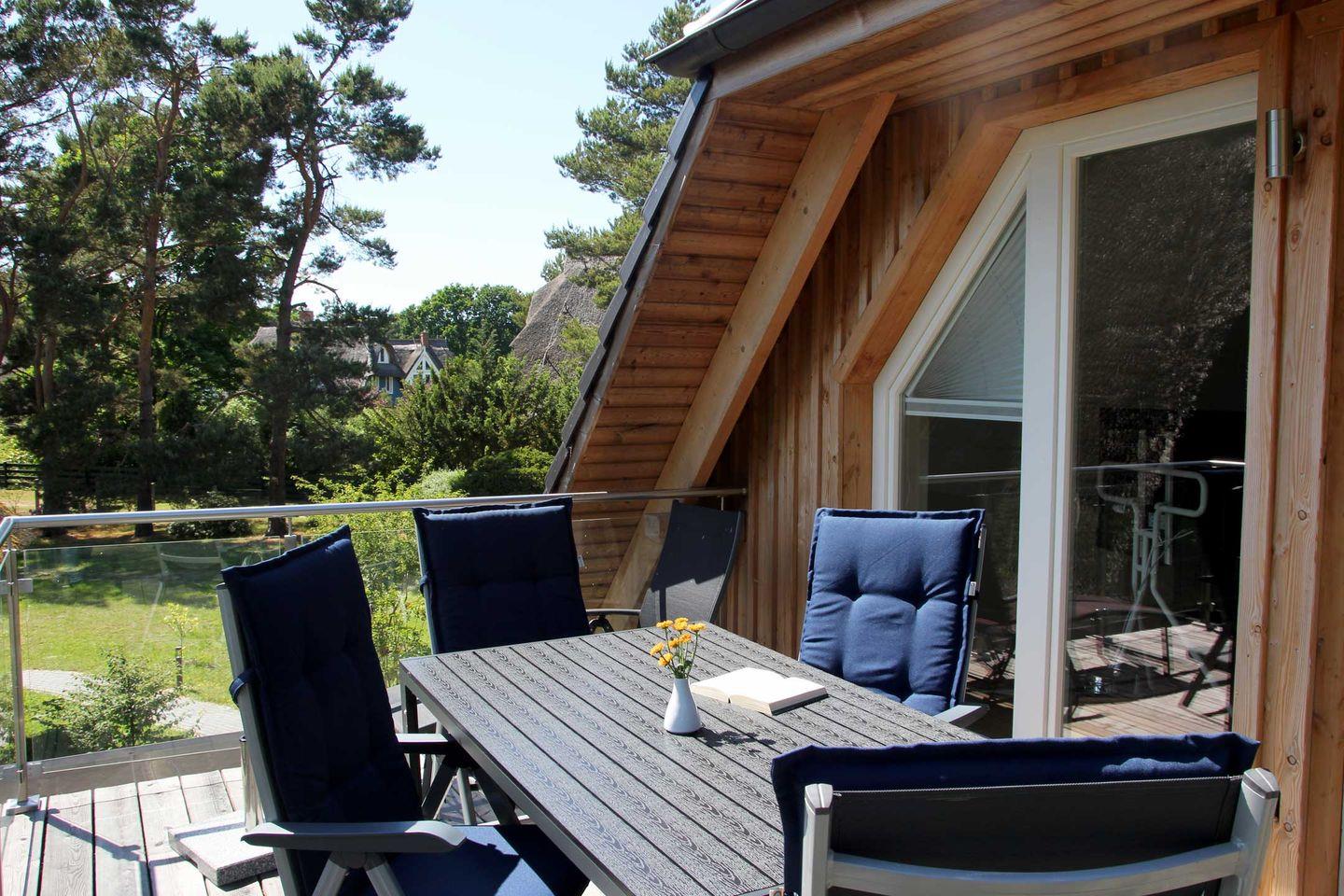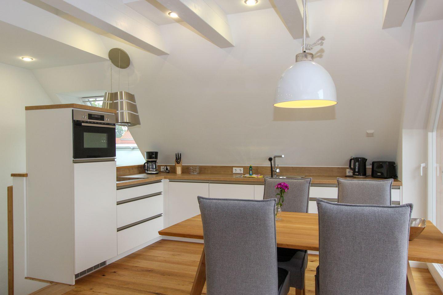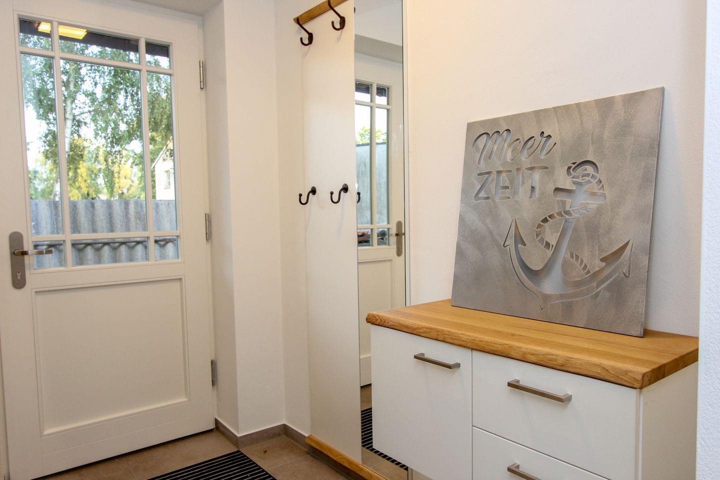 Über eine separate Haustür im Erdgeschoss gelangt man über eine Treppe in die Ferienwohnung im Obergeschoss.