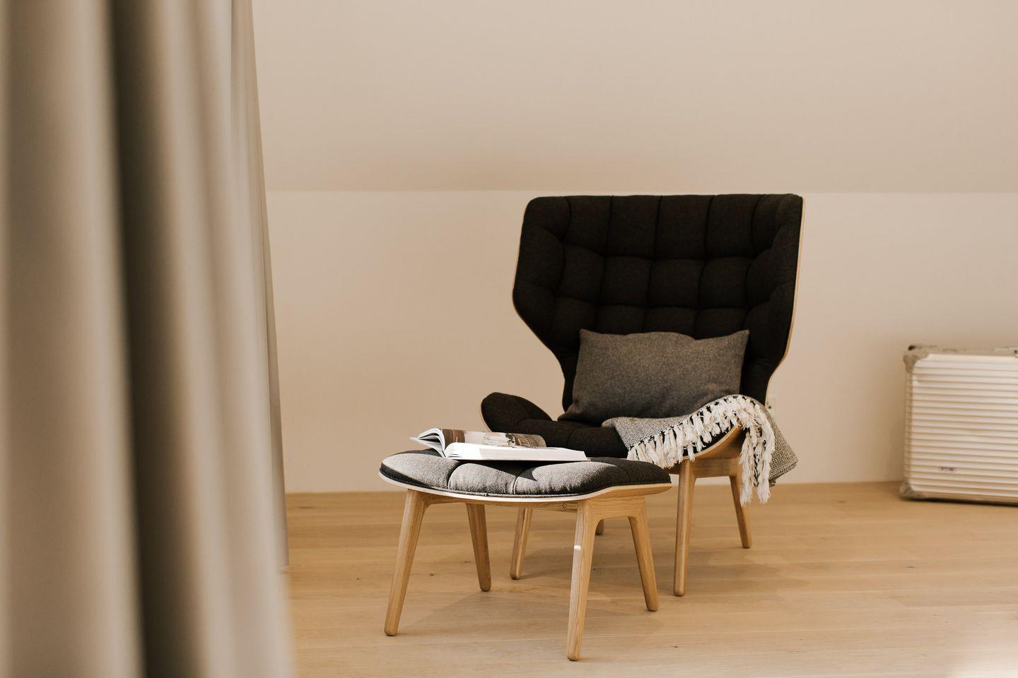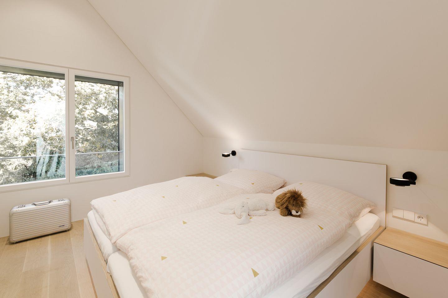 Das erste Schlafzimmer befindet sich im Erdgeschoss mit eigenen Zugang zur Terrasse. Die anderen beiden Schlafzimmer liegen gemeinsam mit dem Wannenbad im Obergeschoss und bieten einen traumhaften Ausblick.
