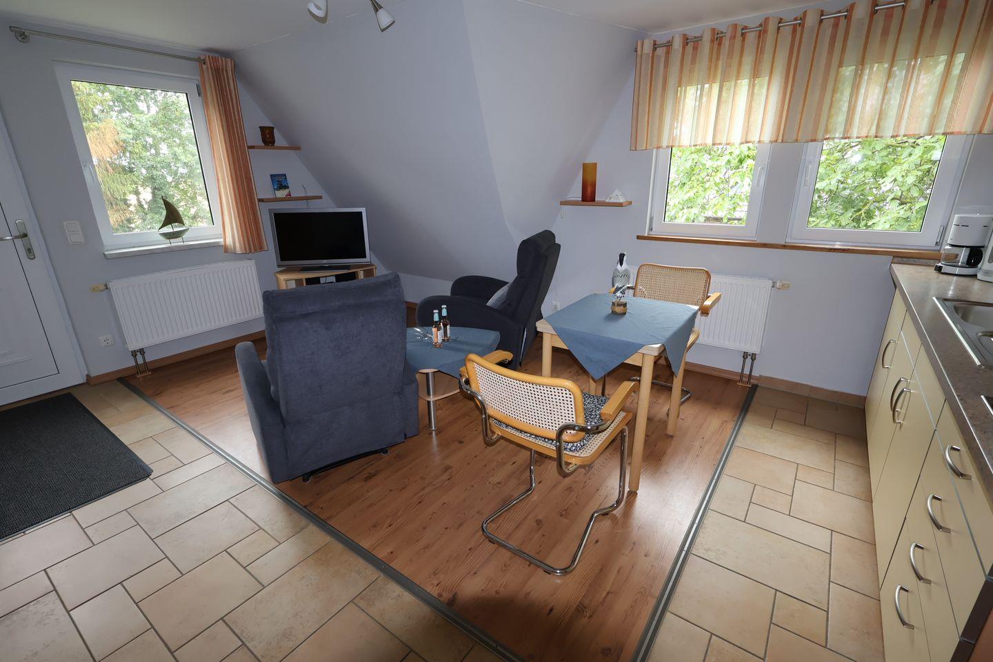 Die Wohnung Kirschbaum im idyllischen Wieck bietet für 2 Personen ein schönes Sommerurlaubsquartier auf 32 qm. Genießen Sie den Balkon mit Morgensonne und weitläufigen Blick auf das Feld. Ein PKW-Parkplatz steht Ihnen am Haus zur Verfügung. Von hier aus gelangt man in wenigen Minuten in den beschaulichen Ortskern mit einem Eiscafé, wechselnden Ausstellungen in der Darßer Arche und verschiedenen Fahrradverleihen. Ein Geheimtipp ist der Wiecker Boddenbadeplatz mit Imbiss, Spielplatz, Schatten spendenden Bäumen, ein Volleyballnetz und eine Rutsche in´s Wasser.