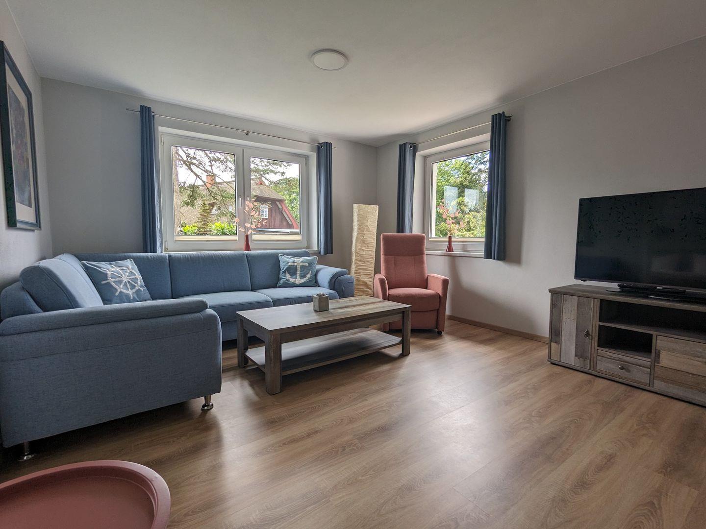 Willkommen im "Ankerplatz" – Ihr perfektes Ferienhaus in Wieck a. Darß! Diese großzügige 90 m² große Unterkunft bietet Platz für bis zu 6 Personen und verfügt über 3 komfortable Schlafzimmer sowie 2 moderne Badezimmer. Genießen Sie entspannte Stunden auf der Terrasse im Garten oder bereiten Sie ein leckeres Essen in der voll ausgestatteten Küche zu. WLAN, Fernseher und ein Privatparkplatz sorgen für zusätzlichen Komfort. Familien sind herzlich willkommen, da die Wohnung kindersicher ist. Erleben Sie unvergessliche Tage in traumhafter, ländlicher Umgebung!