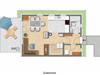 Im Erdgeschoss befindet sich die große geräumige Küche und der lichtdurchflutete Wohn- und Essbereich. Eine Senseo Kaffeemaschine steht in der Küche für Sie bereit. Vom Wohnzimmer aus gelangen Sie direkt auf die Südterrasse und in den beschaulichen, grünen Garten. Ebenfalls im Erdgeschoss finden Sie das Gästebad mit einer bodengleichen Dusche.