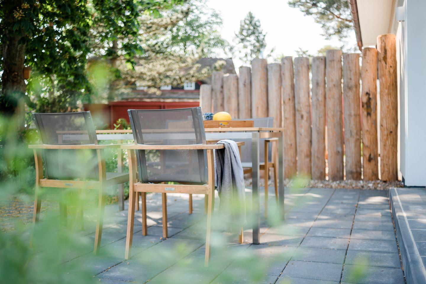 Vom Wohnzimmer aus gelangen Sie direkt auf die Südterrasse auf der Sie im Sommer frühstücken und am Abend gemütlich grillen können.