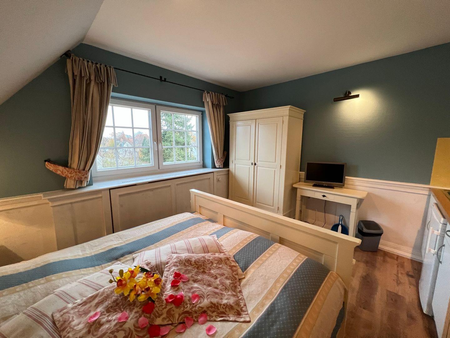 Ruhig und etwas verträumt, so präsentiert sich unsere liebevoll eingerichtete "Matrosenstube" inmitten einer atemberaubenden Urlaubsatmosphäre. Freuen Sie sich auf erholsame Wohlfühltage und gönnen Sie sich zu Zweit eine entspannende Auszeit. Am Abend kuscheln Sie sich in die weichen Federn Ihrer familiären Unterkunft und genießen traumhafte Stunden unter reetgedecktem Dach.