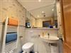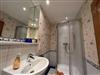 * Bad mit Waschbecken, großem Spiegel, Dusche/WC & einer Infrarot-Wärmelampe