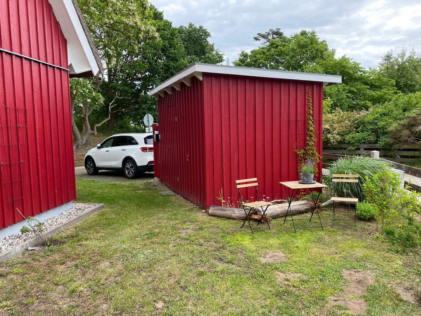 Im Nebengebäude können die Fahrräder abgestellt werden.