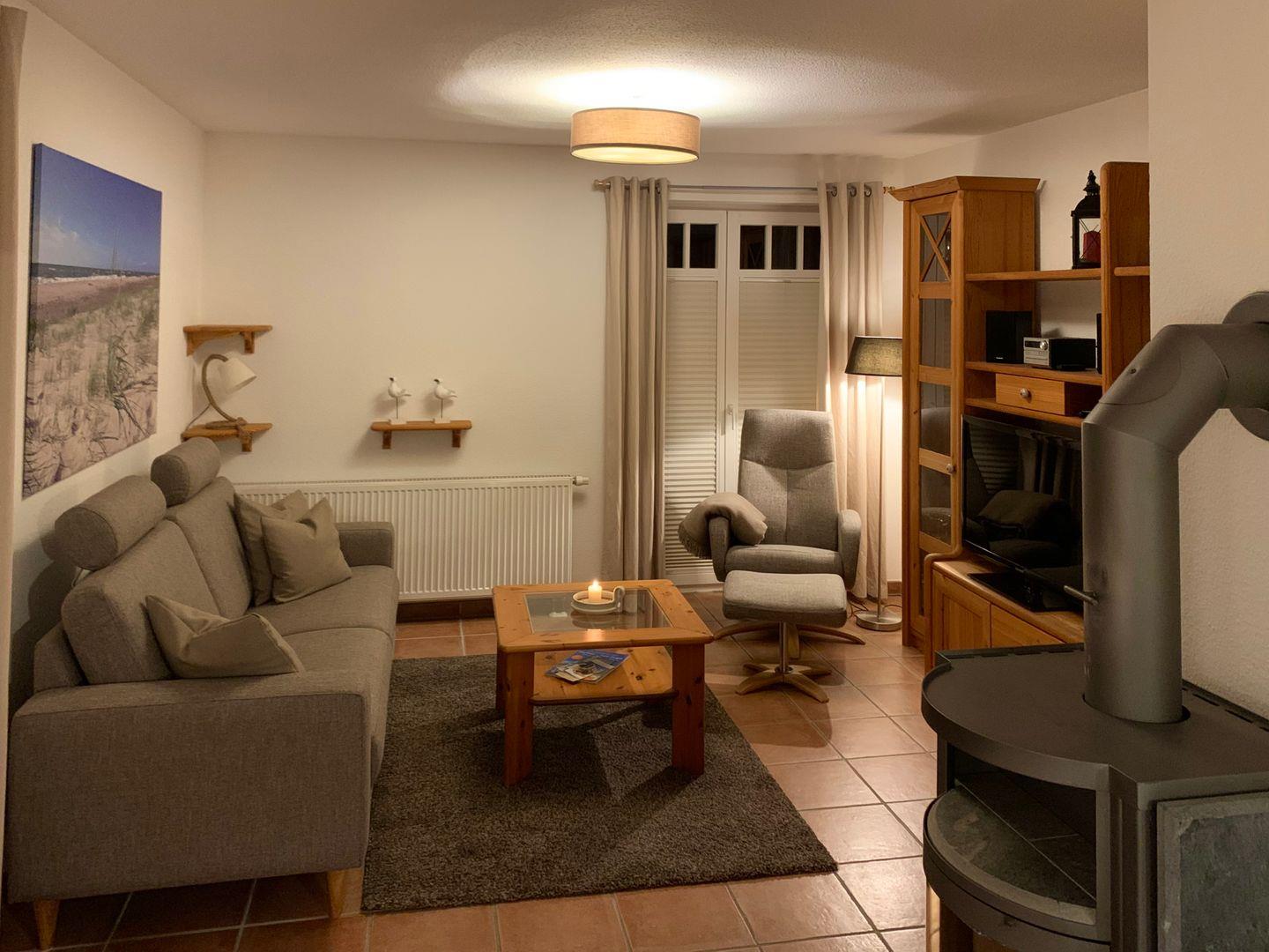 Im Erdgeschoss stehen Ihnen ein großzügiges Duschbad, eine komfortable Küche mit Geschirrspüler und Gefrierschrank, sowie das, durch einen Kamin von der Küche getrennte, Wohnzimmer zur Verfügung.