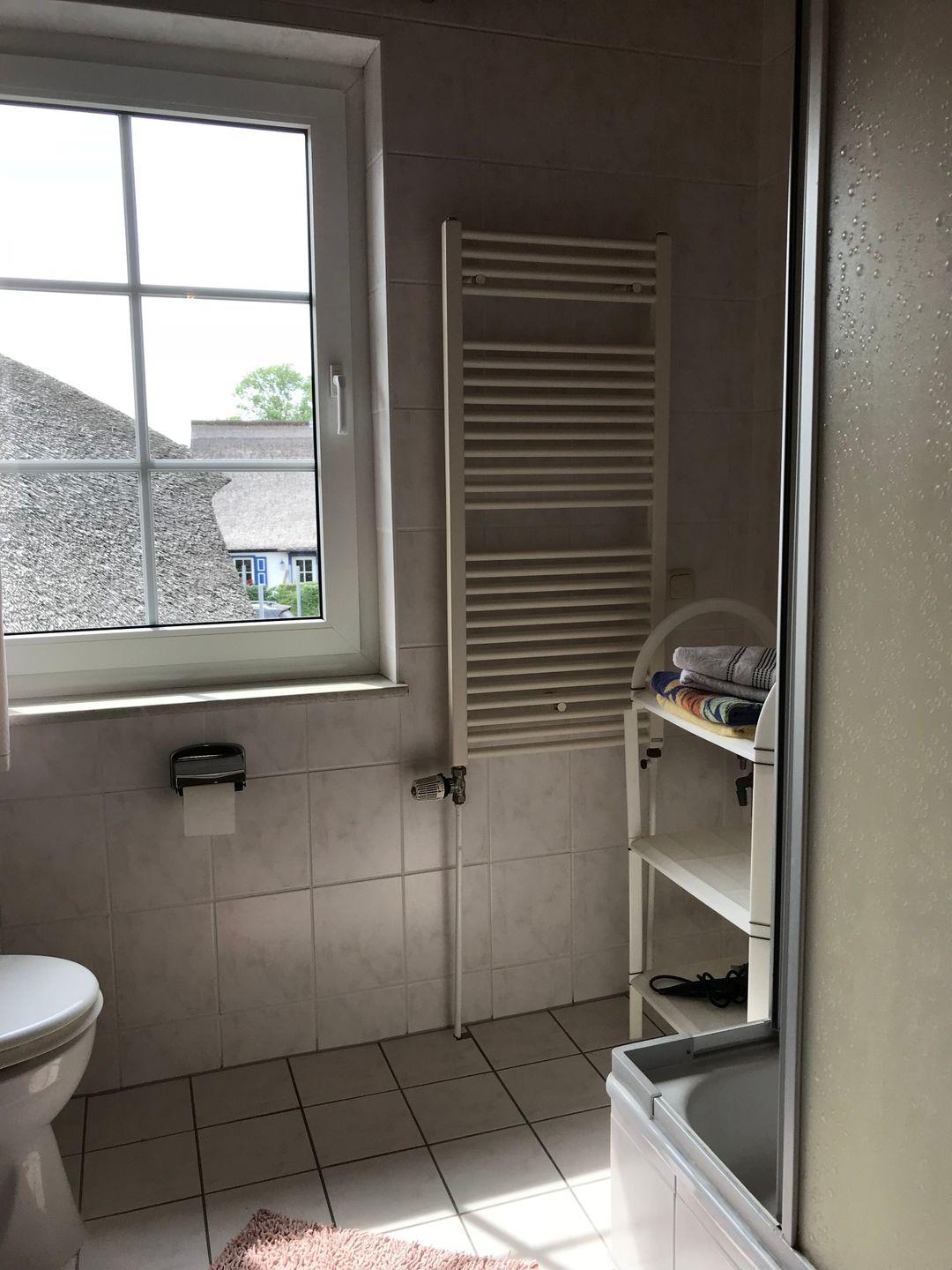 Das Bad verfügt über eine Dusche, WC,Warmwasser Heizung.
