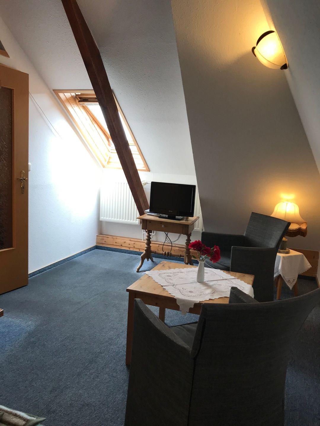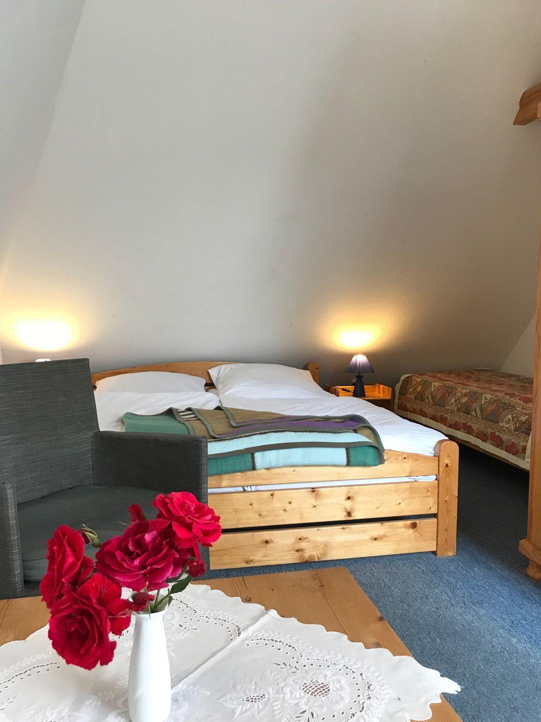 Über eine Innentreppe erreichen Sie das Dachgeschoss ca 20 m² mit 2. Schlafzimmern mit Doppelbett und einen Einzelbett.