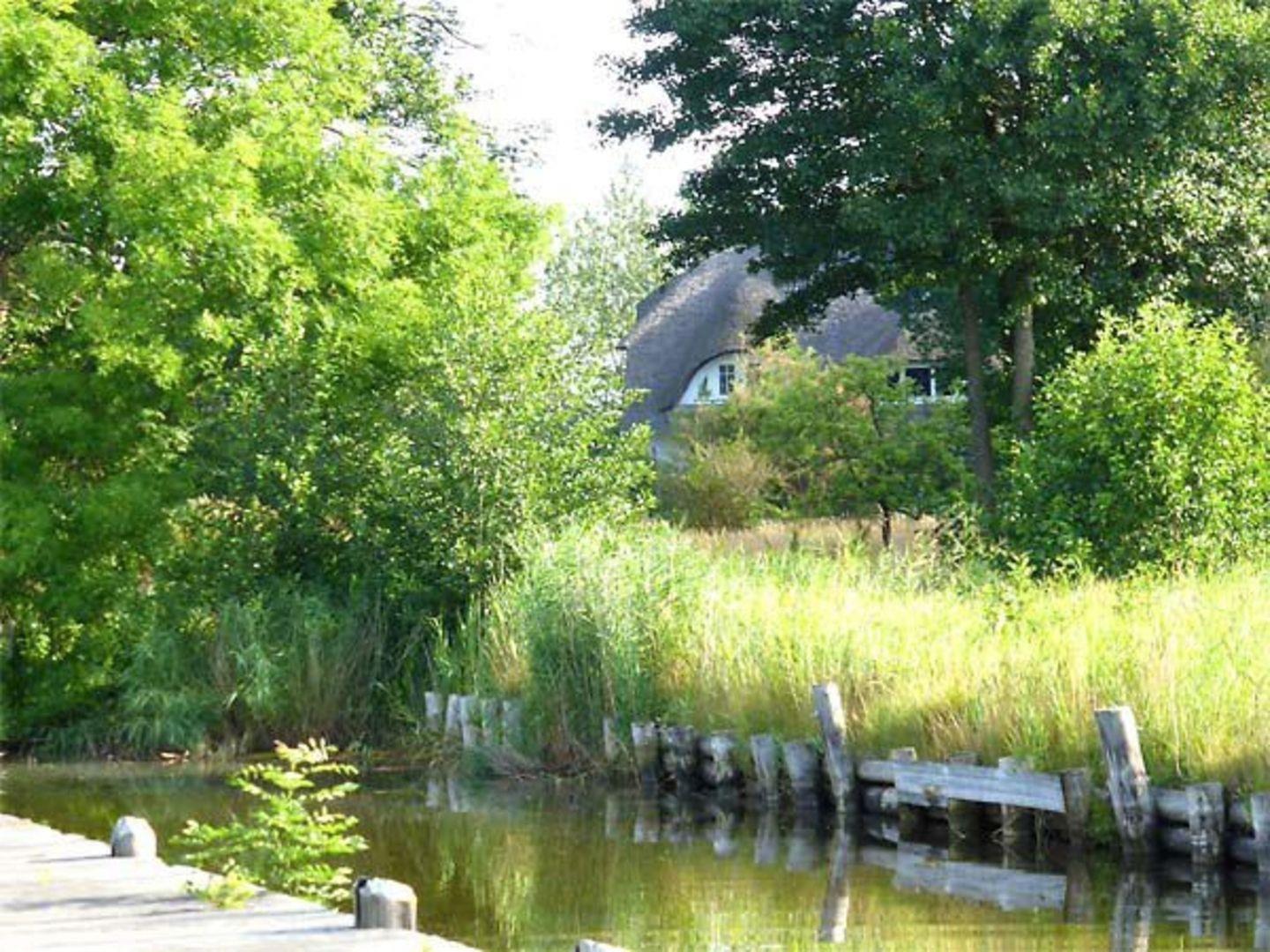 Sehr ruhige und gleichzeitig zentrale Lage in Wieck, in der Nähe verschiedener Restaurants und nur 300m vom kleinen Bootshafen entfernt. Durch die Weitläufigkeit des eigenen Anwesens und benachbarter Grundstücke, auf denen zwischen hohen Bäumen weitere reetgedeckte Häuser stehen, entsteht ein sehr ursprünglicher und stimmungsvoller Eindruck am Bodden.