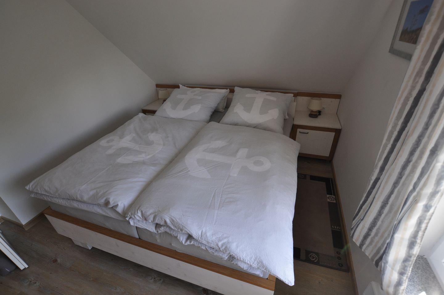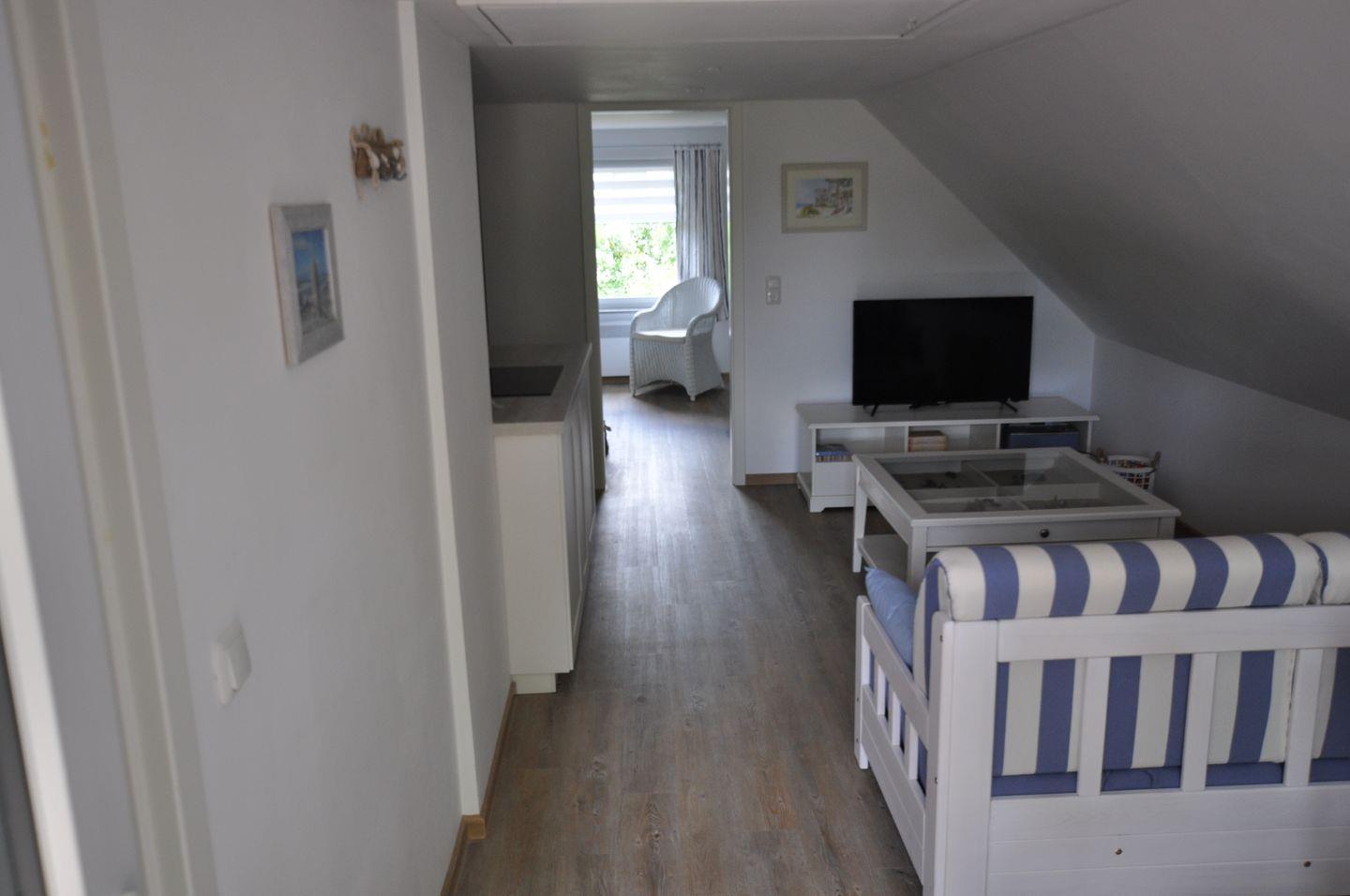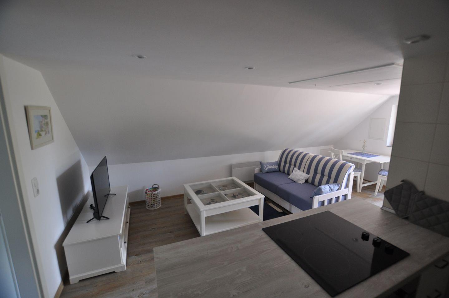 Die kleine Ferienwohnung befindet sich im Obergeschoss eines reetgedeckten ehemaligen alten Fischerkatens.