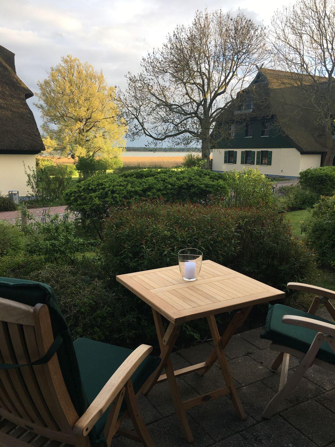 Vom Wohnzimmer, sowie der nach Süden ausgerichteten großen Terrasse hat man einen wunderbaren Blick auf den "Bodstedter Bodden", hierzu gibt es einen direkten Zugang.