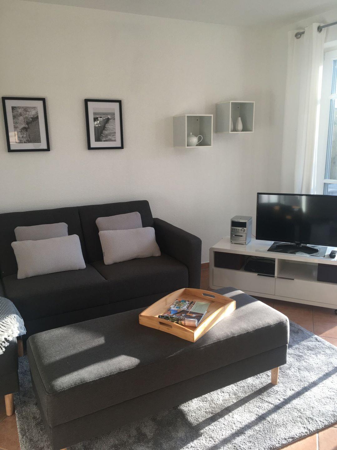Die Ferienwohnung liegt im Erdgeschoss des wunderschönen mit Reet gedeckten Hauses. Mit ihrer hellen, stilvollen und gemütlichen Einrichtung heißt die Wohnung Sie herzlich willkommen. Sie ist nach Süden ausgerichtet und liegt in der Nähe des Boddens.