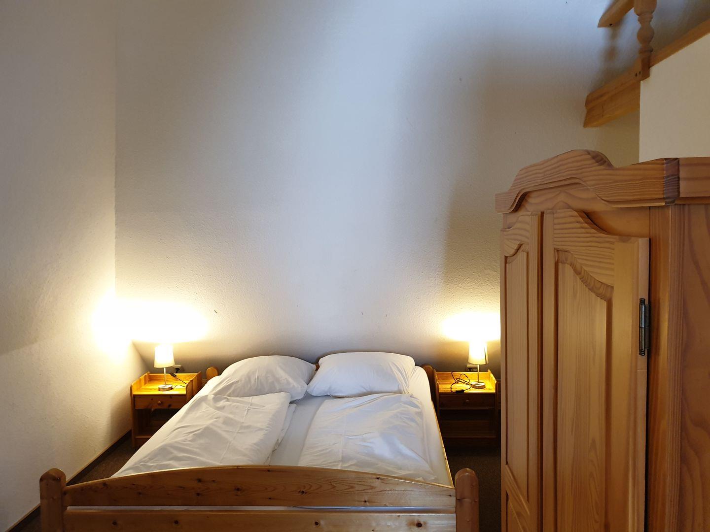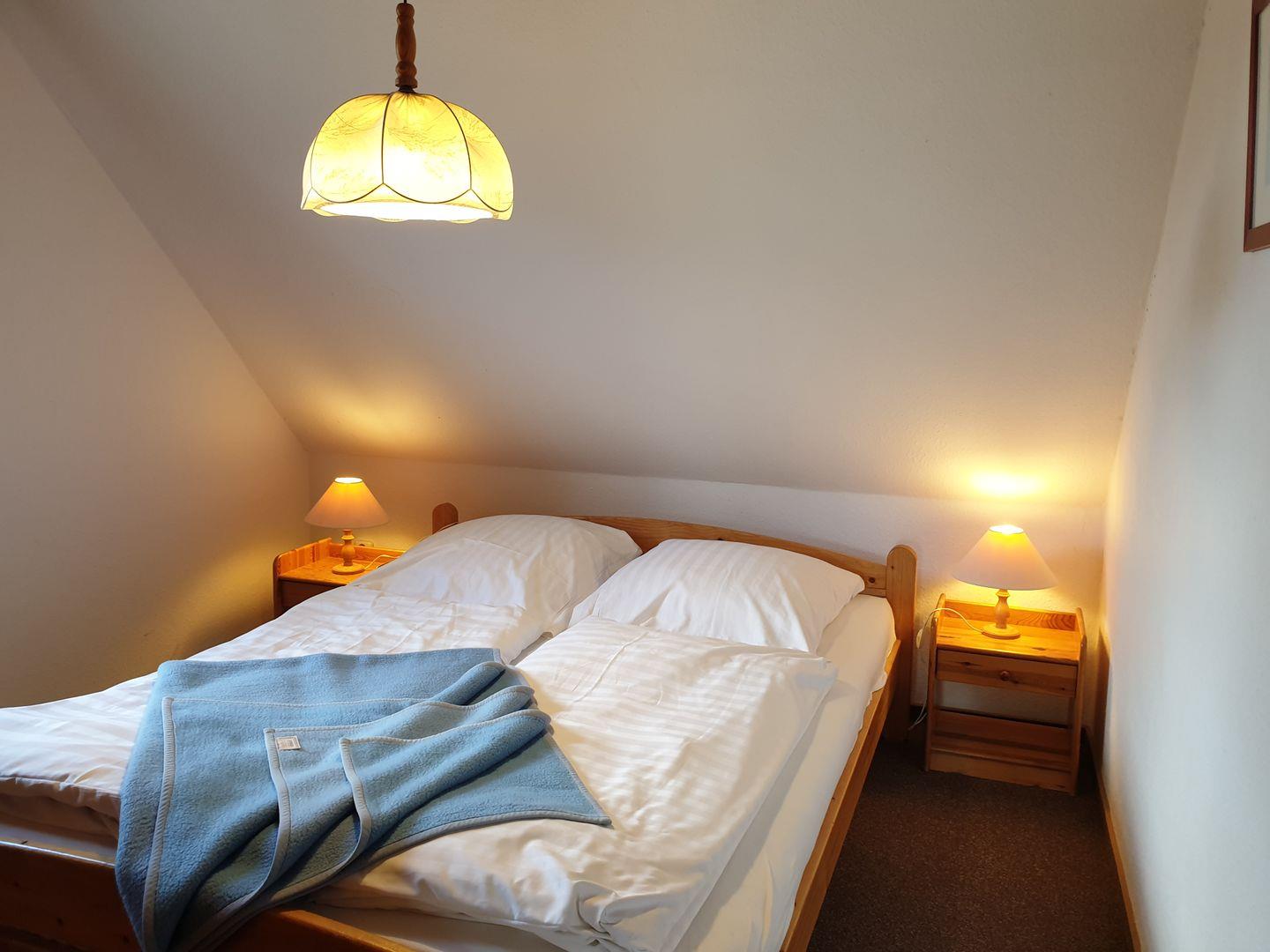 Über eine Innentreppe erreichen Sie das Dachgeschoss ca 20 m² mit zwei Schlafzimmern mit Doppelbett und einen Einzelbett.
