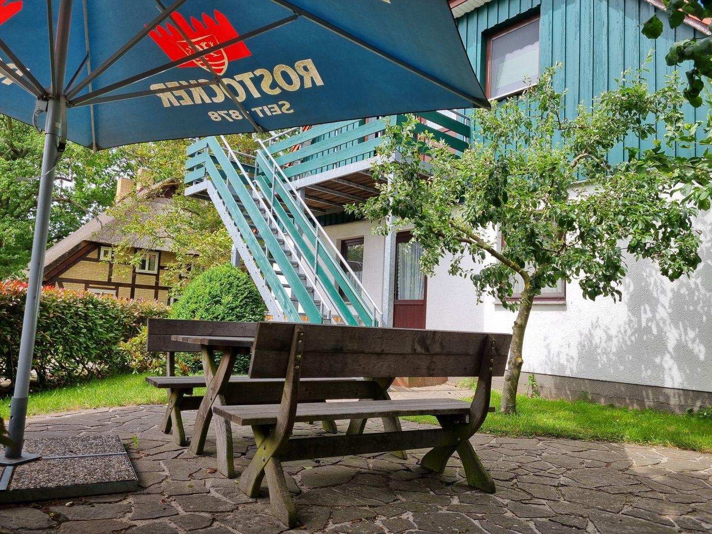 Der kleine, niedliche Balkon, der nach Norden ausgerichtet ist, lädt dazu ein, die frische Luft zu genießen. Im Garten stehen Ihnen bequeme Gartenmöbel zur Verfügung, ideal für entspannte Stunden im Freien. Ein Privatparkplatz auf dem Hof bietet Ihnen eine sichere Abstellmöglichkeit für Ihr Fahrzeug.