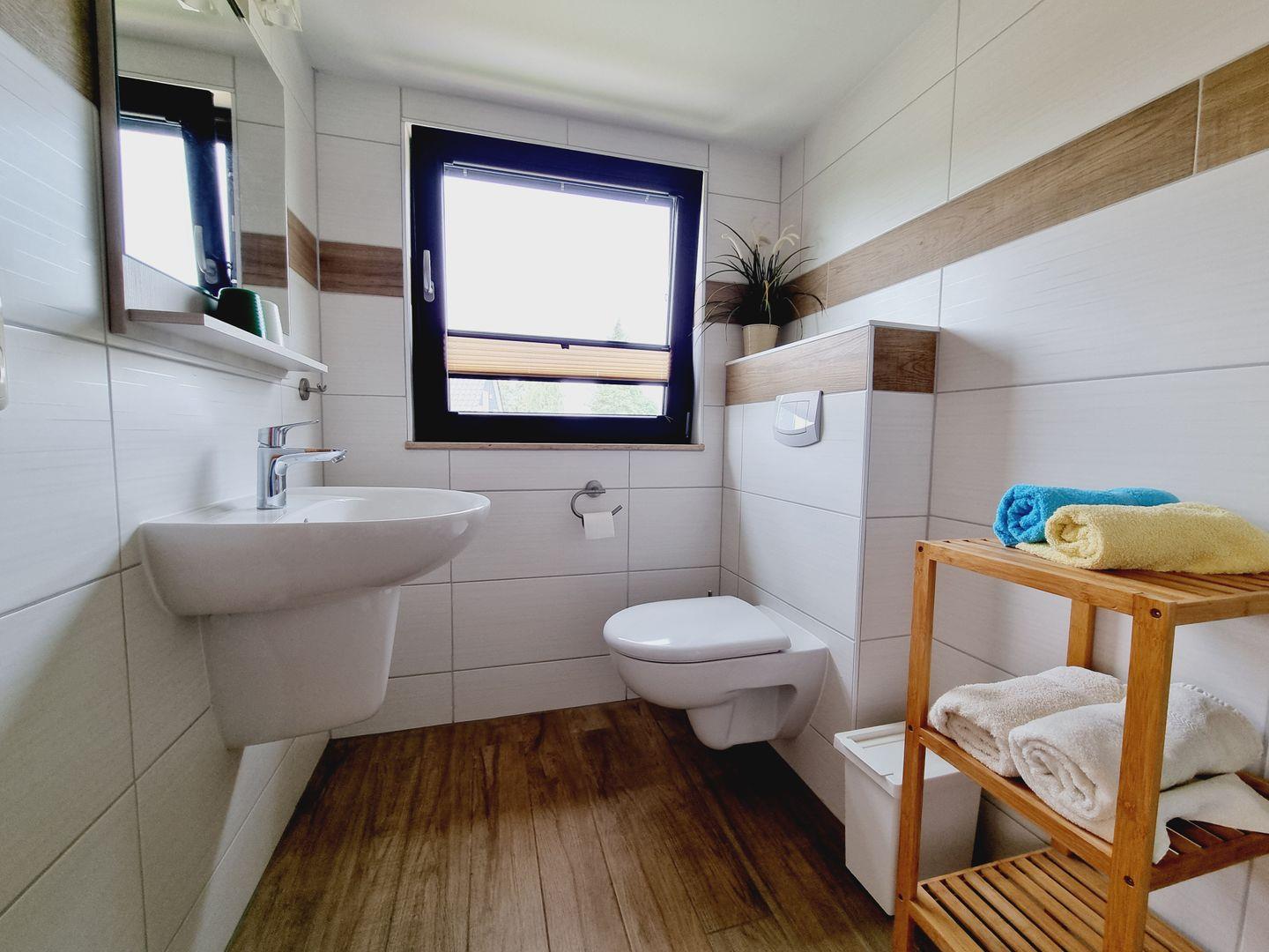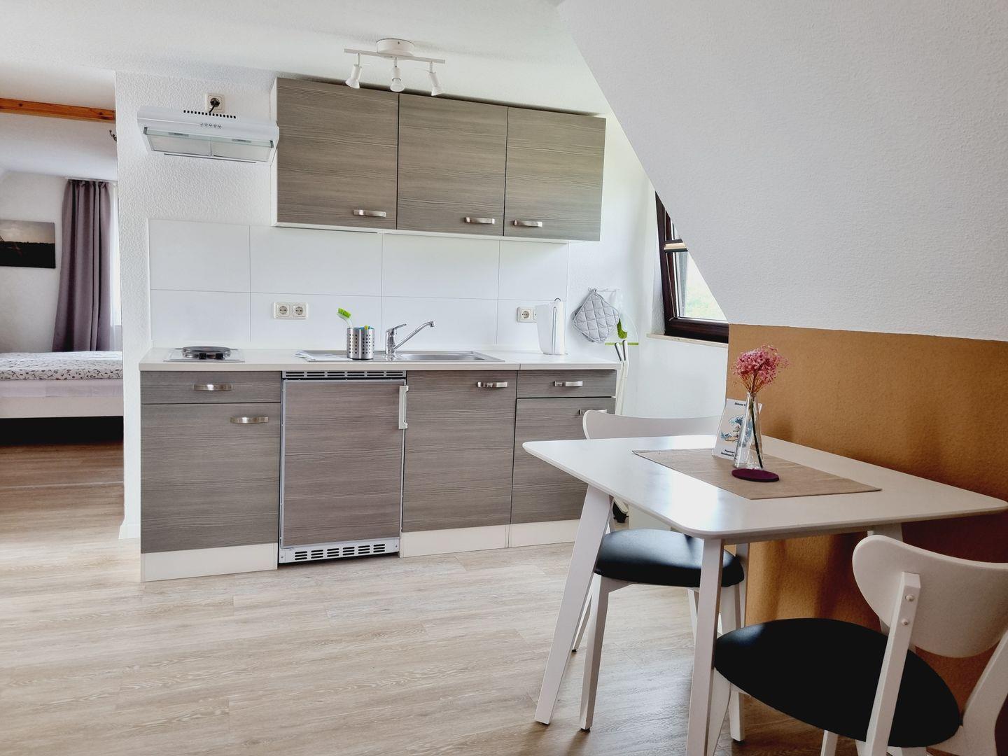 Unsere Unterkunft verfügt über eine gut ausgestattete Küche, inklusive Kühlschrank mit Gefrierfach, Küchenzeile und allen notwendigen Geschirr und Besteck. Das Badezimmer ist modern und gepflegt, und wir stellen Ihnen sowohl Bettwäsche als auch Hand- und Badetücher zur Verfügung. Zusätzlich bieten wir gegen Aufpreis einen Brötchen- und Frühstücksservice, um Ihren Aufenthalt noch komfortabler zu gestalten.