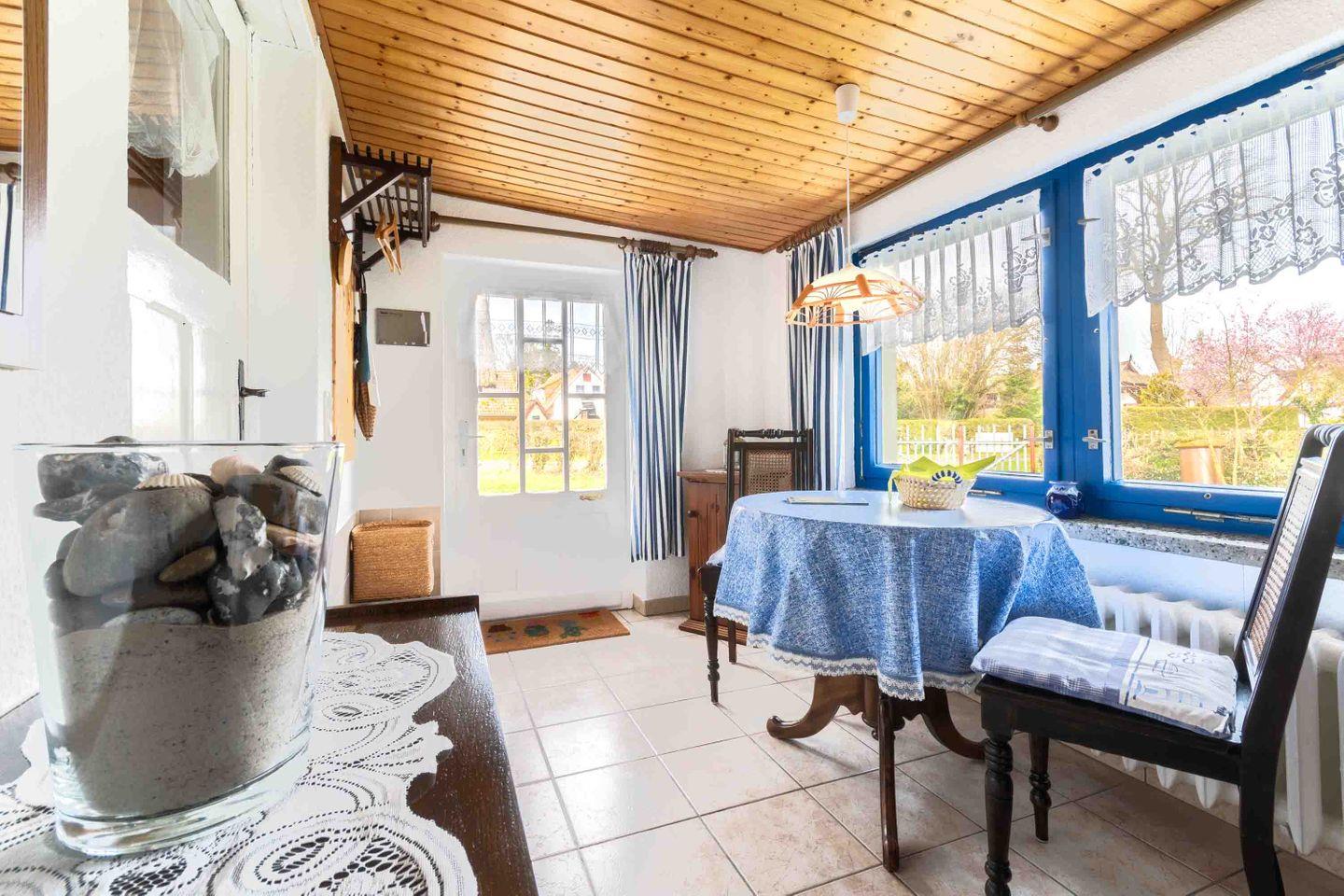 Unser Ferienobjekt "Boddenidyll" liegt im beschaulichen Ort Wieck a. Darß und befindet sich in einem großen Naturgarten mit unverbautem Blick auf den Bodden. Wieck a. Darß ist ein staatlich anerkannter Erholungsort am Ufer des Boddstedter Boddens im Nationalpark Vorpommersche Boddenlandschaft. Unser gemütliches Ferienhaus mit Reetdach bietet ideale Voraussetzungen zum Entspannen.