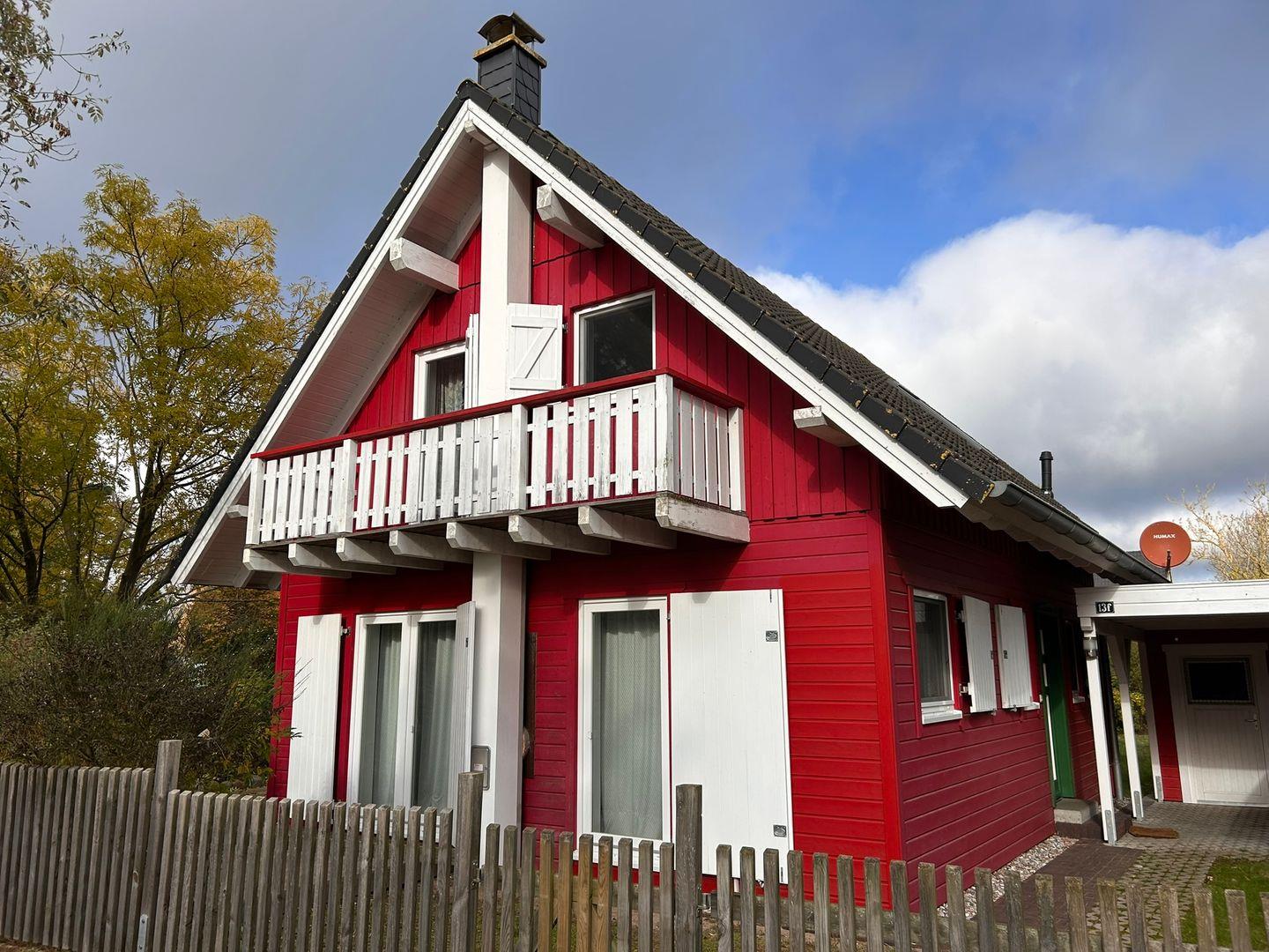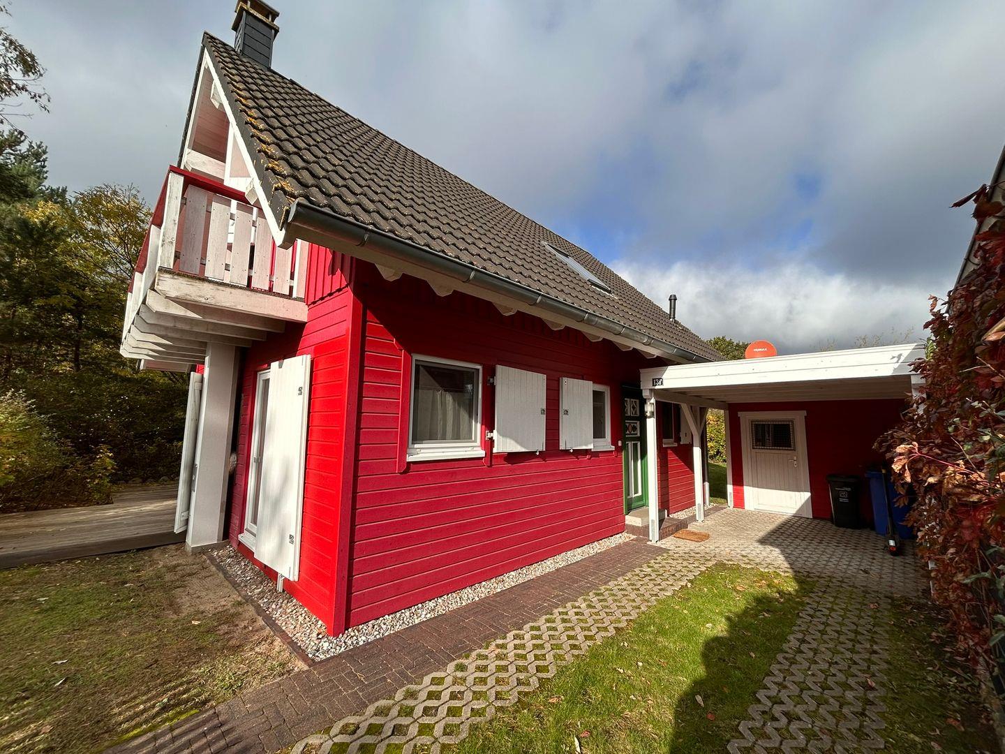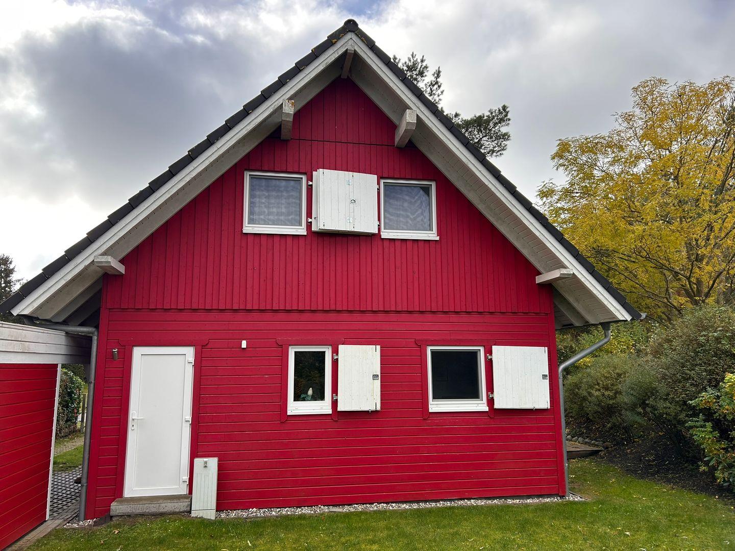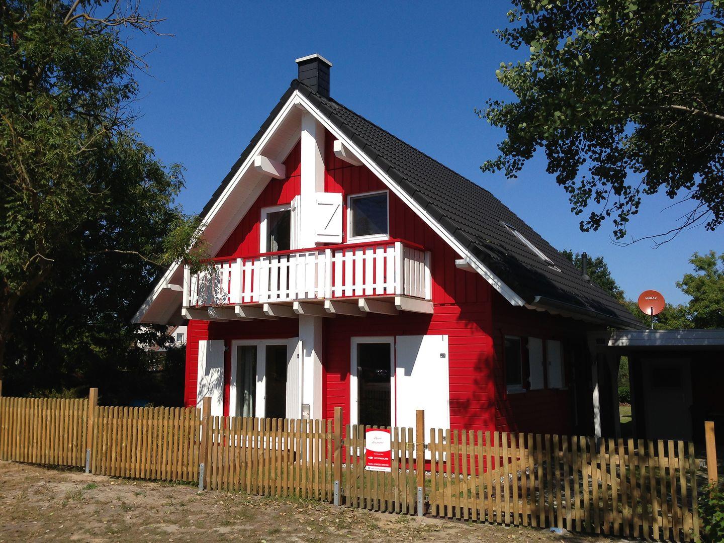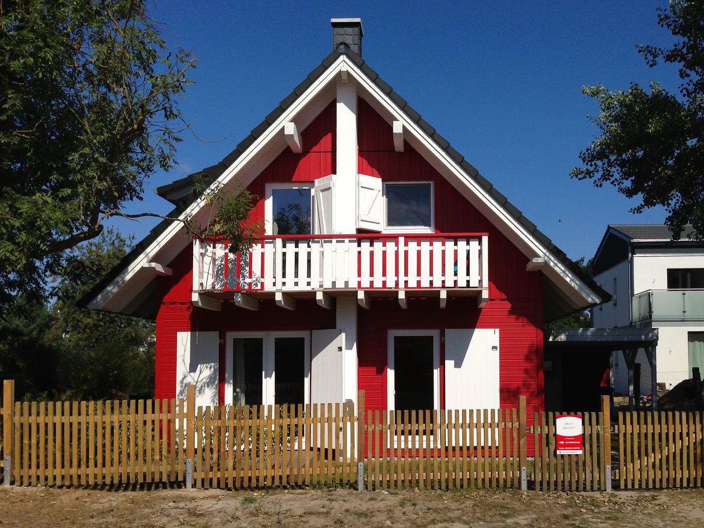 Das charmante, rote Holzhaus "Anemone" in Wieck a. Darß erinnert mit seinem skandinavischen Stil an ein Schwedenhaus und lädt Familien zu erholsamen Urlaubstagen ein. Nur 200 Meter vom Nationalpark Vorpommersche Boddenlandschaft und etwa 1 km vom Bodden entfernt, ist es ideal für Naturfreunde und Ruhesuchende.
