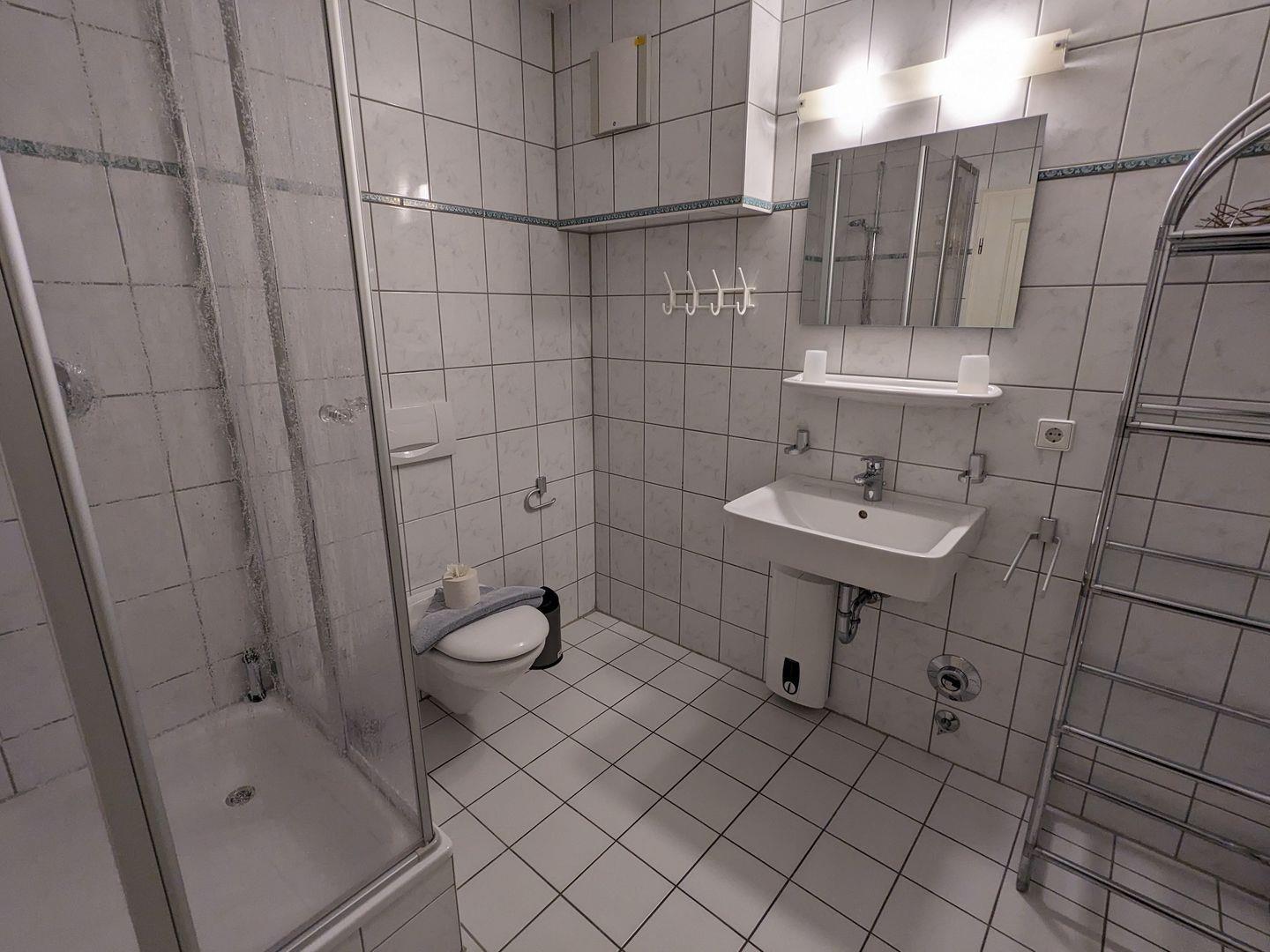 Das Schlafzimmer, mit bequemen Schlafmöglichkeiten für zwei Personen, garantiert erholsame Nächte. Im Badezimmer verfügen Sie über eine Dusche, ein Waschbecken, ein WC und einen Haartrockner. Selbstverständlich stehen auch ein Wäscheständer und die Möglichkeit zur Nutzung einer Waschmaschine (Gemeinschaftsnutzung) zur Verfügung.