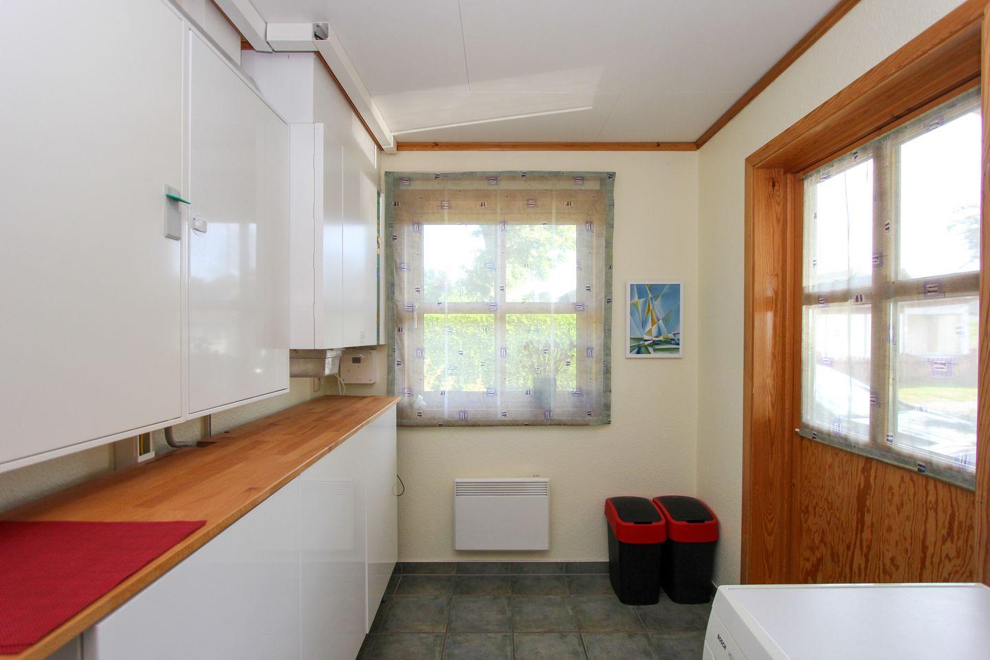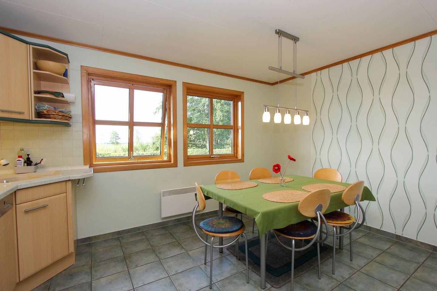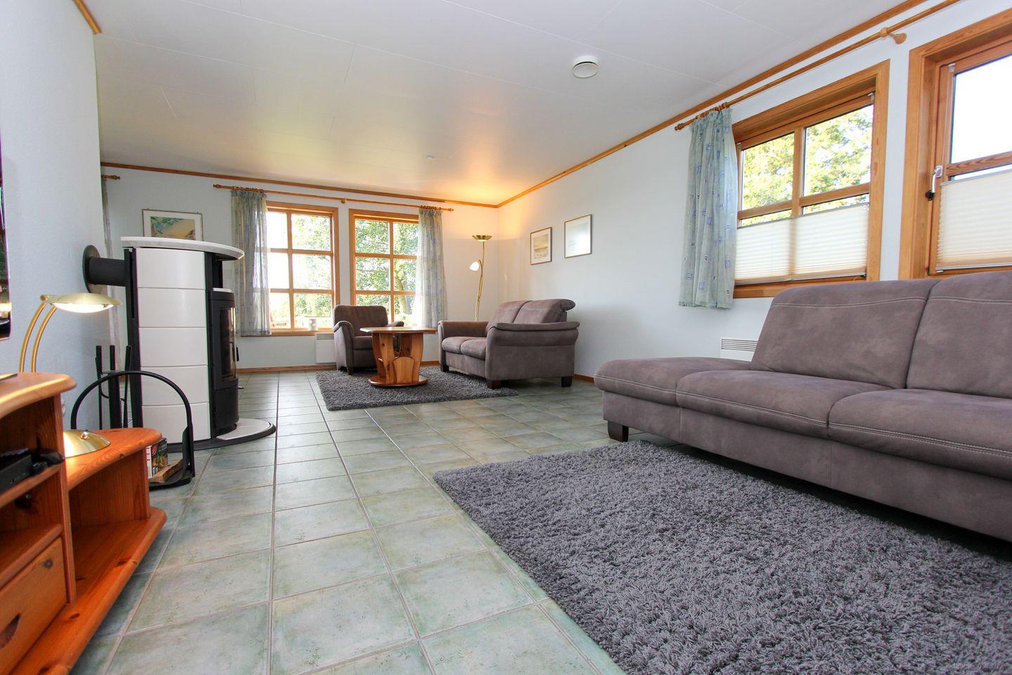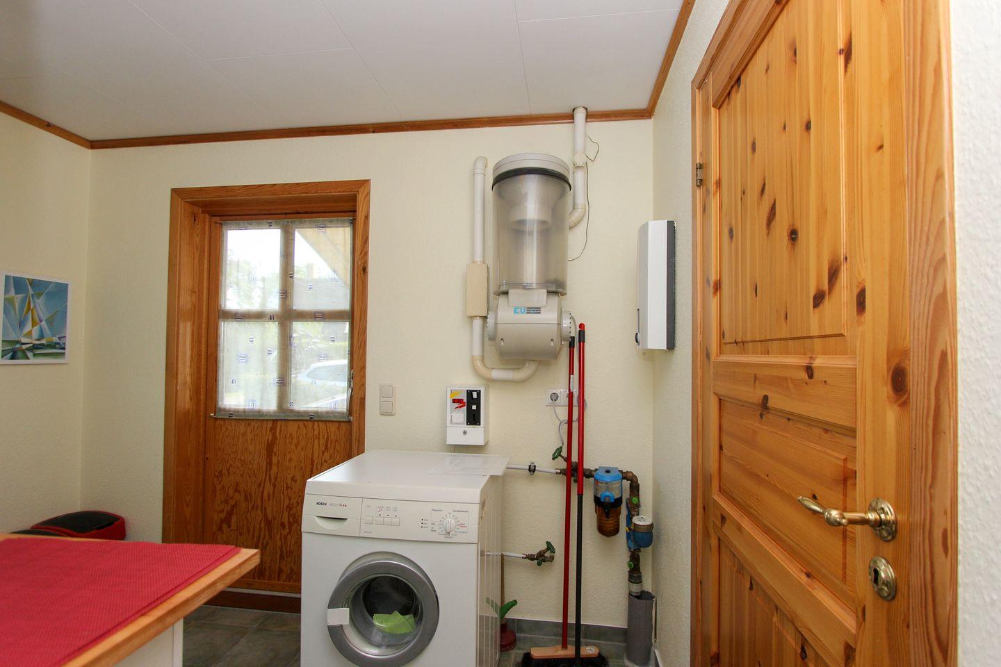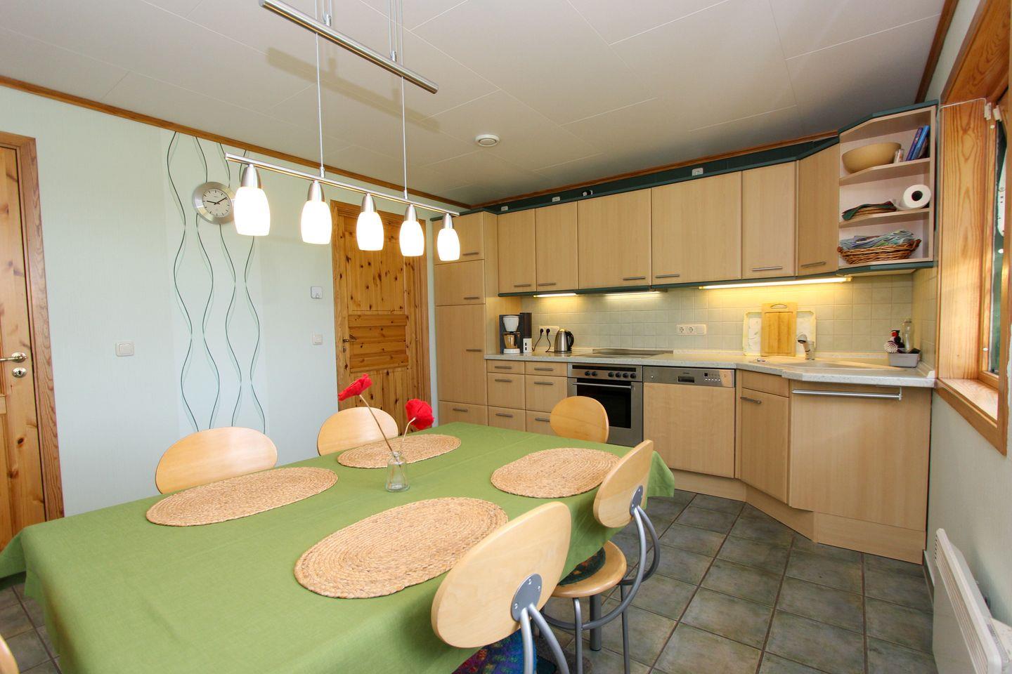 Das Haus verfügt über ein Badezimmer mit Dusche und Badewanne und einem zusätzlichem Gäste-WC. Der großzügige Wohnbereich wirkt einladend und gemütlich. Ein Kaminofen sorgt an kühleren Tagen für behagliche Wärme und wohnliche Atmosphäre. Die große Küche mit Essbereich eignet sich hervorragend für gemeinsame Mahlzeiten und lässt keine Wünsche offen: Herd, Backofen, Kühlschrank, Spülmaschine, Kaffeemaschine sowie Wasserkocher gehören zur Ausstattung. Für zusätzlichen Komfort bei längeren Aufenthalten sorgt die eigene Waschmaschine. Ein Wäscheständer ist ebenfalls vorhanden.