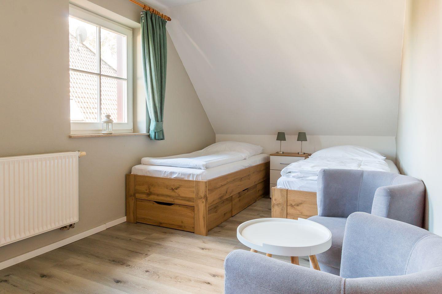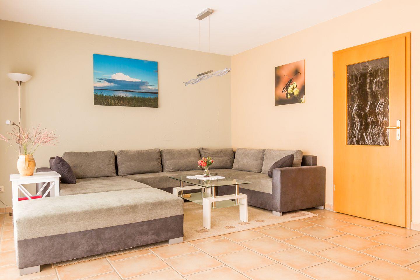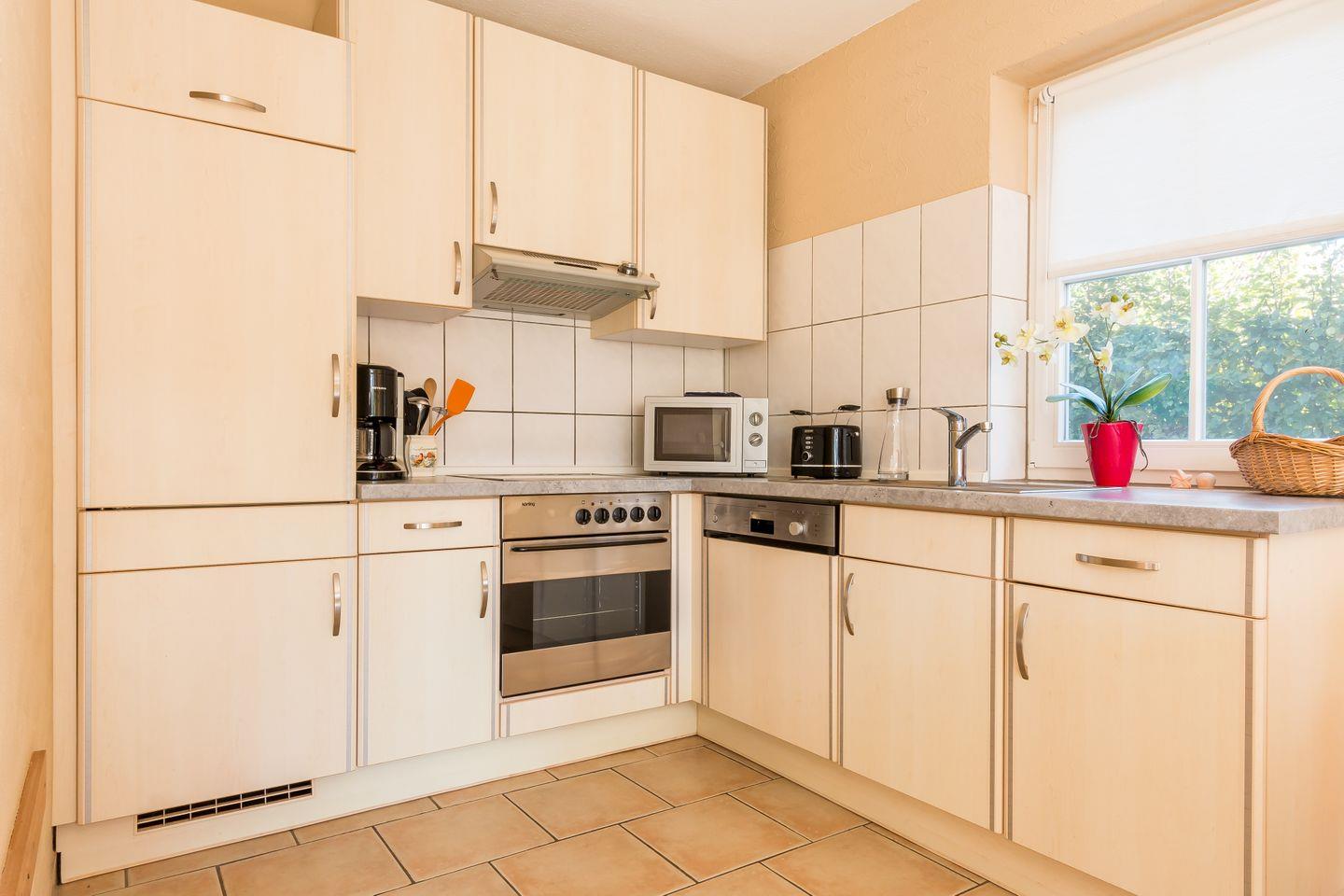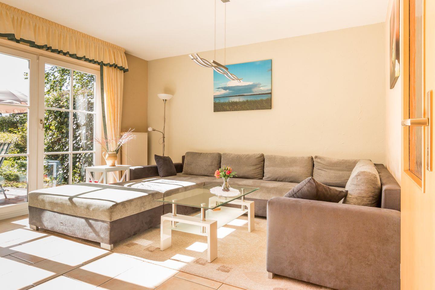 Willkommen in deinem neuen Ferienzuhause. Die gemütliche Doppelhaushälfte mit 98 Quadratmetern bietet dir und deinen Liebsten viel Platz zum Wohlfühlen. Mit drei komfortablen Schlafzimmern und zwei modernen Bädern ist ausreichend Raum für erholsame Nächte und entspannte Urlaubstage garantiert. Der offene Wohn- und Küchenbereich lädt zu gemeinsamen Stunden ein – hier kannst du nach einem aktiven Tag an der frischen Luft gemütlich beisammensitzen oder deine Lieblingsgerichte zubereiten.