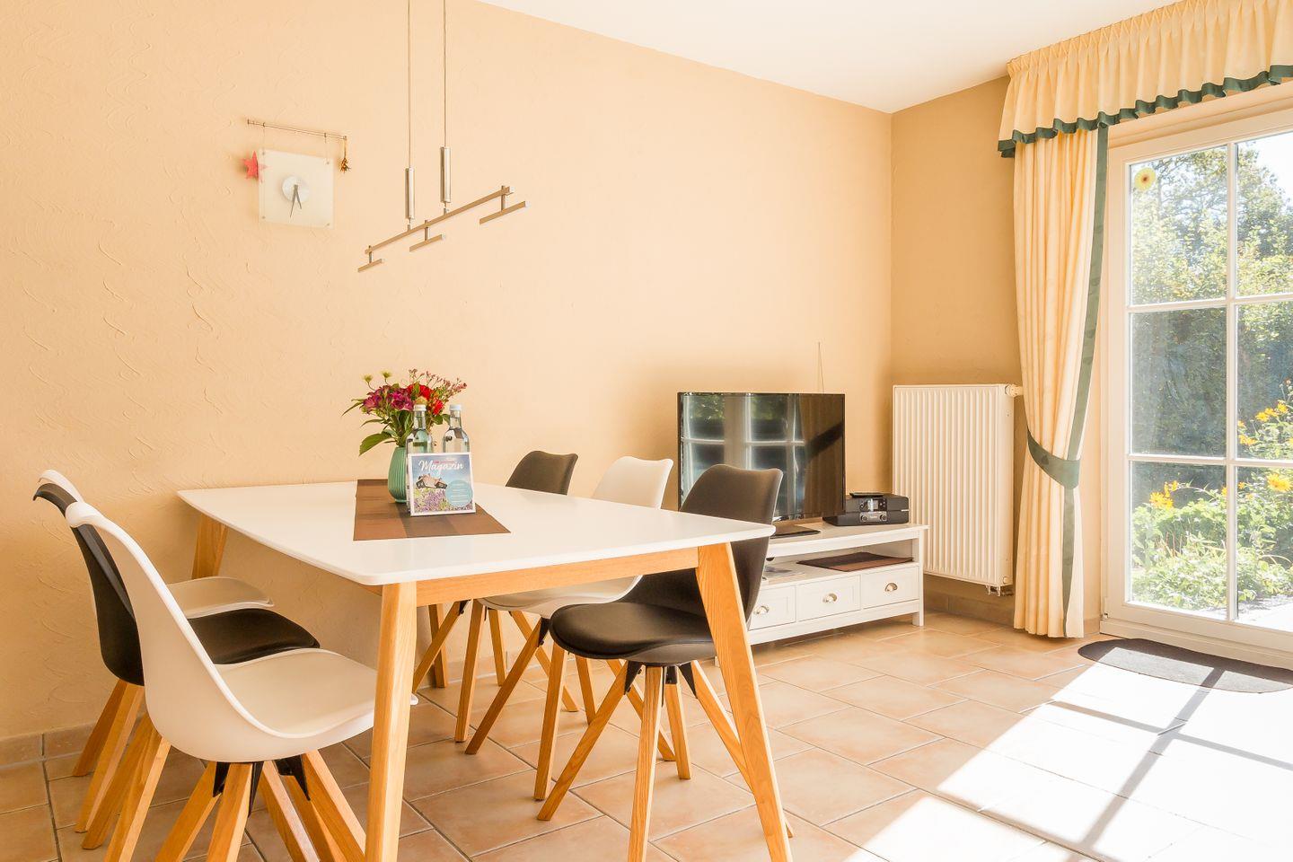 Besonders entspannend wird dein Aufenthalt auf der eigenen Terrasse, die zum Sonnenbaden oder geselligen Abenden im Freien einlädt. Für noch mehr Wohlbefinden sorgt die integrierte Sauna, in der du nach einer Wanderung oder Radtour wunderbar abschalten kannst. Haustiere sind herzlich willkommen, sodass auch dein vierbeiniger Freund den Urlaub in vollen Zügen genießen kann.