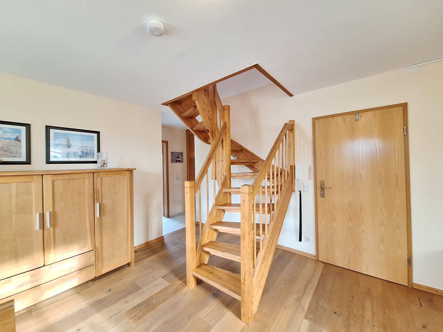 Zur Wohnung gehört ein eigener PKW-Stellplatz, ein abschließbarer Fahrradschuppen, sowie ein gemütlicher Sitzplatz im Garten vor dem Haus, der zum Entspannen im Freien einlädt.