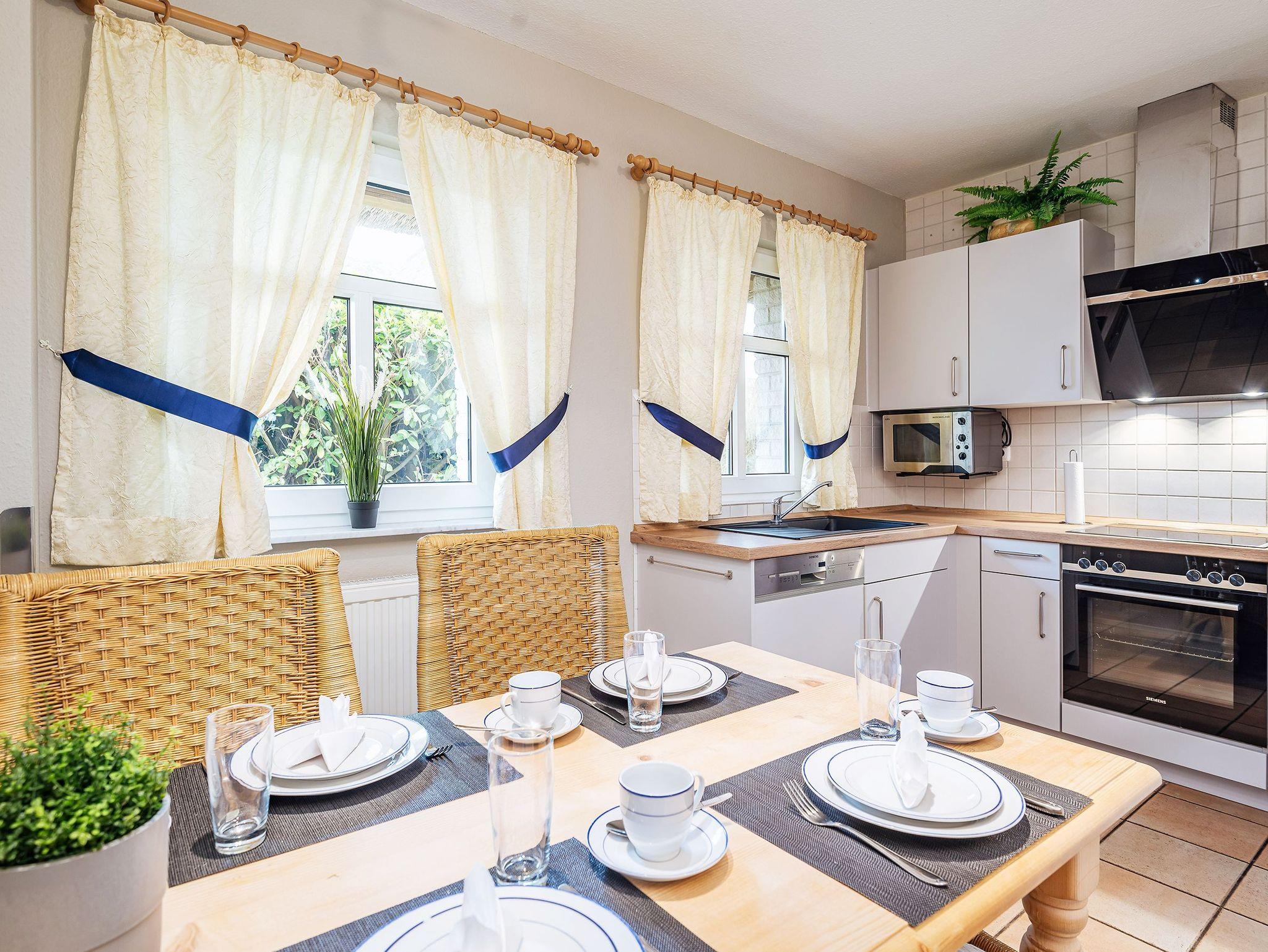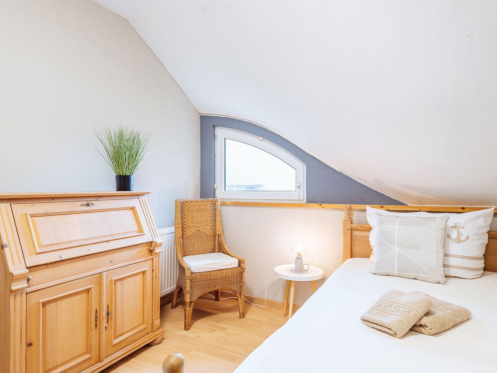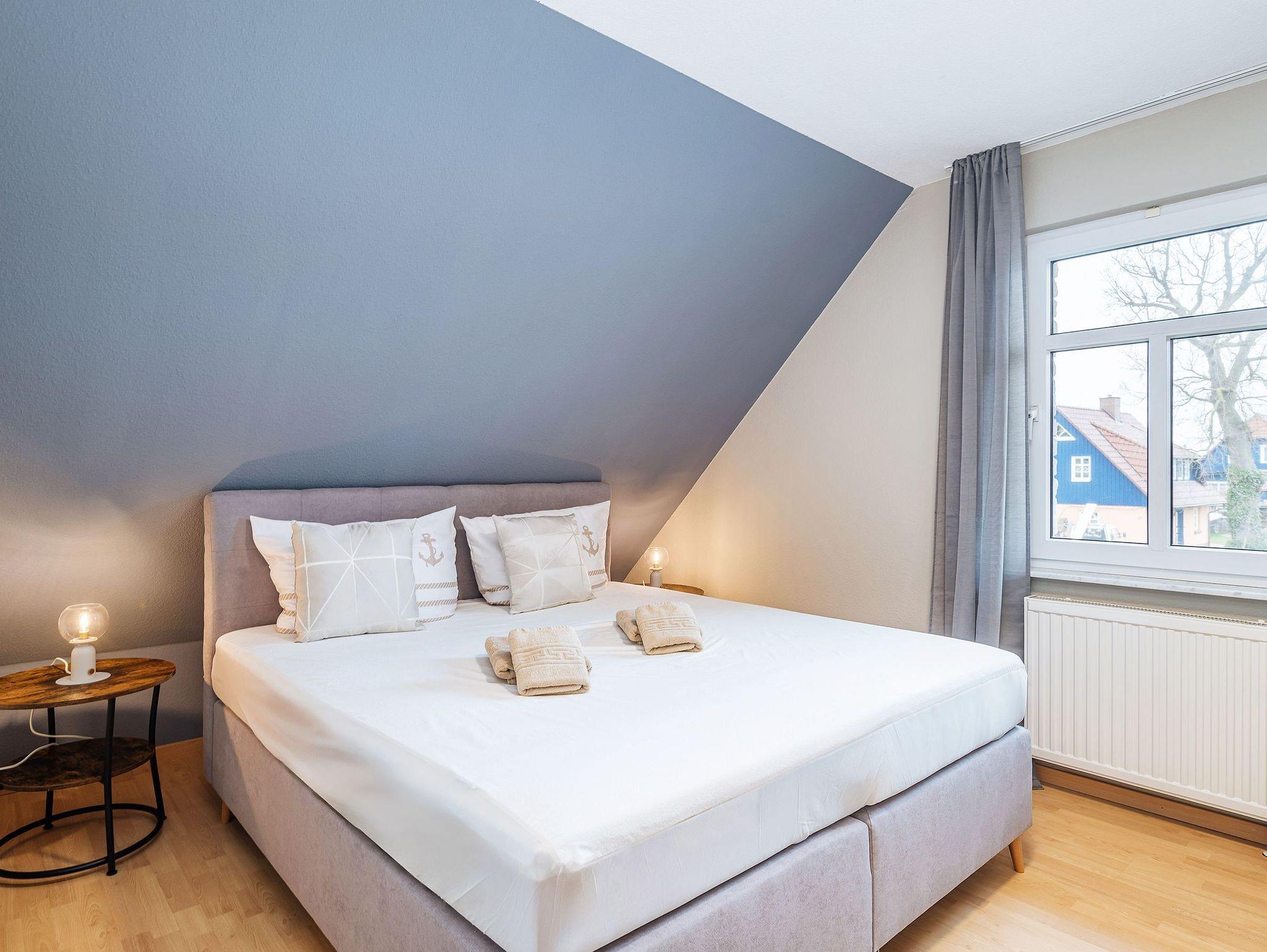 Das Ferienhaus verfügt über einen offenen Wohn -/Küchenbereich, zwei Schlafzimmer mit Boxspringbetten, zwei moderne Duschbäder, eine nach Süden ausgerichtete Terrasse, einen HWR und einer gemütlichen Rückzugsmöglichkeit zum Schnökern im Obergeschoß. Ein Besuch auf der Halbinsel, auch außerhalb des Sommers, lohnt sich immer.