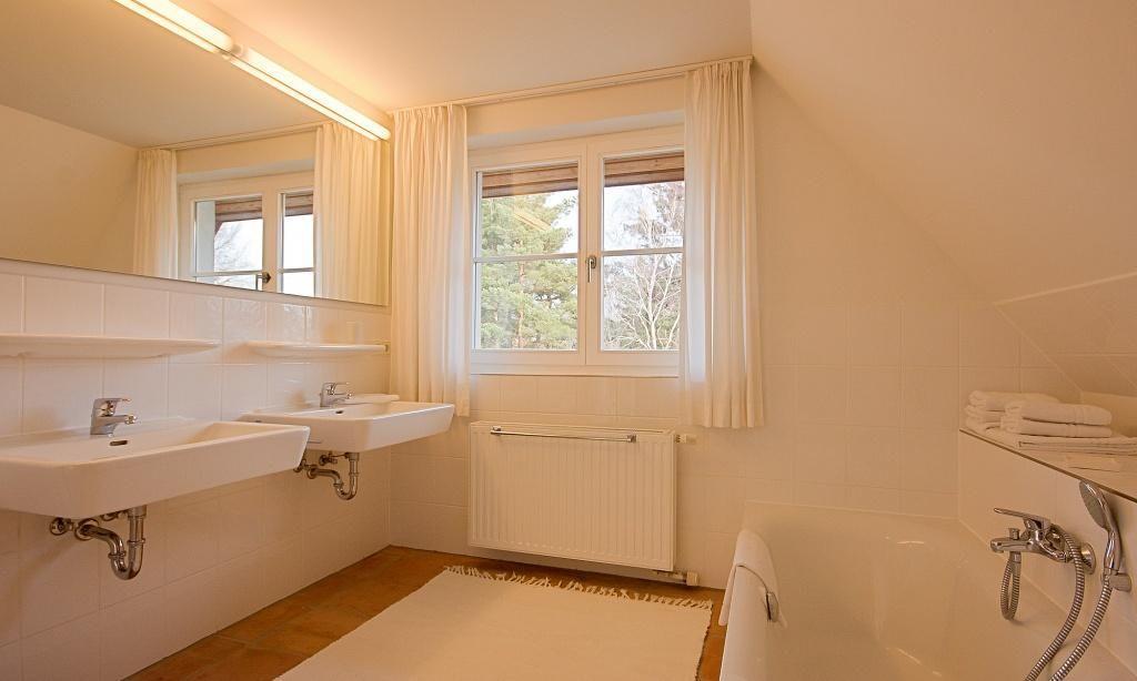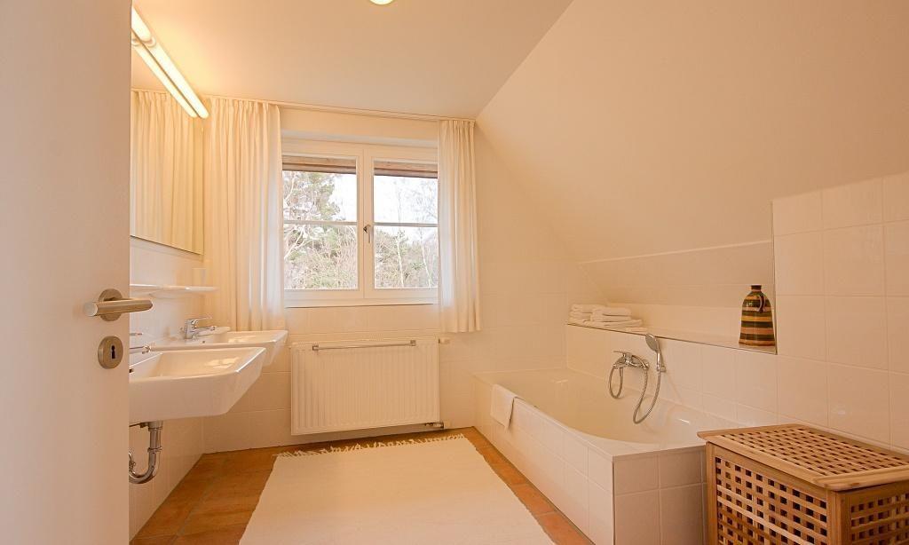 Das darßtypische Ferienhaus begeistert mit seiner großzügigen und lichtdurchfluteten Wohnfläche, die viel Raum für Urlaub bietet. Im Erdgeschoss erwartet dich der gemütliche Wohnraum mit einer Sitzecke, TV-Bereich und einem großen Esstisch an bodentiefen Fenstern. Der gemütliche Schwedenofen rundet den Wohnbereich ab und sorgt besonders in der kalten Jahreszeit für kuscheliges Wohnfeeling. Die separate Küche ist mit einer komfortablen Küchenzeile ausgestattet. Sie schließt sich direkt am Wohnraum an und bietet einen Austritt in den Garten. Wellness-Fans dürfen sich auch auf eine hauseigene Sauna samt Dusche freuen, die sich zusammen mit dem Gäste-WC ebenfalls auf der unteren Etage befindet. Über eine Holztreppe gelangst du ins Obergeschoss, das drei Schlafzimmer beherbergt. Alle Schlafräume sind hell und freundlich eingerichtet und mit gemütlichen Doppelbetten ausgestattet. Vom Hauptschlafzimmer kommst du auch auf den großzügigen Balkon, der einen traumhaften Blick auf den Bodden bietet. Zwei vollwertige Bäder mit Badewanne/WC sowie Dusche/WC machen den Wohnkomfort perfekt.