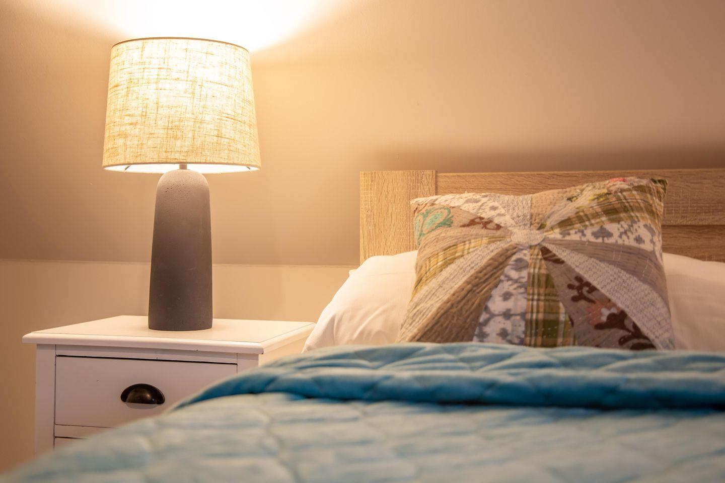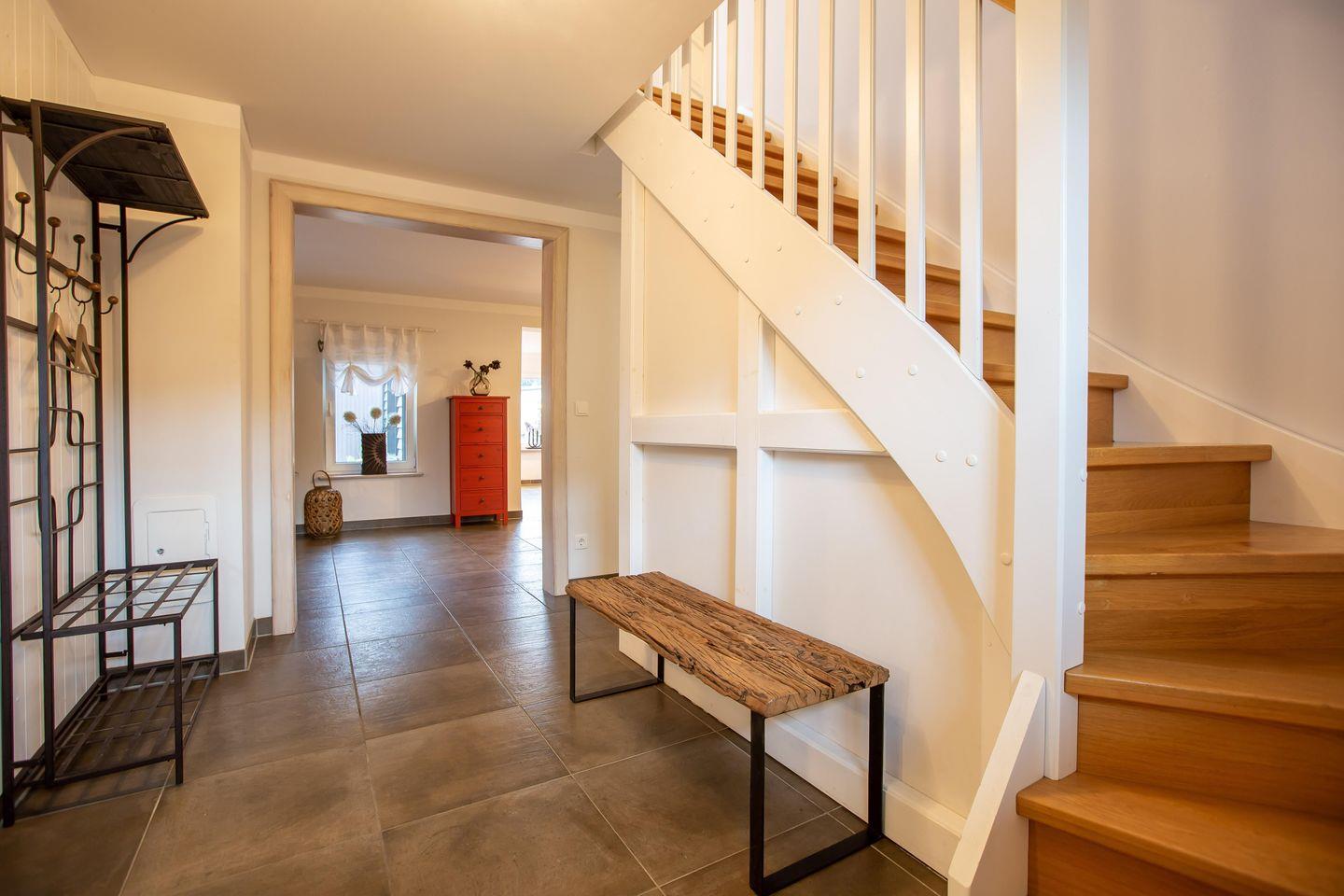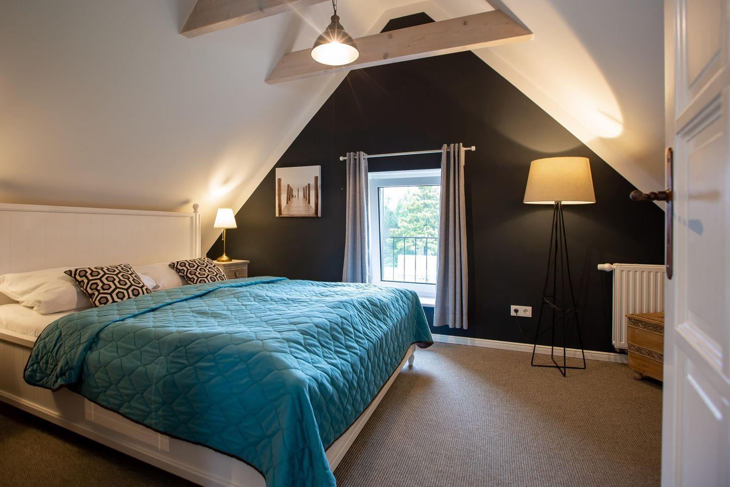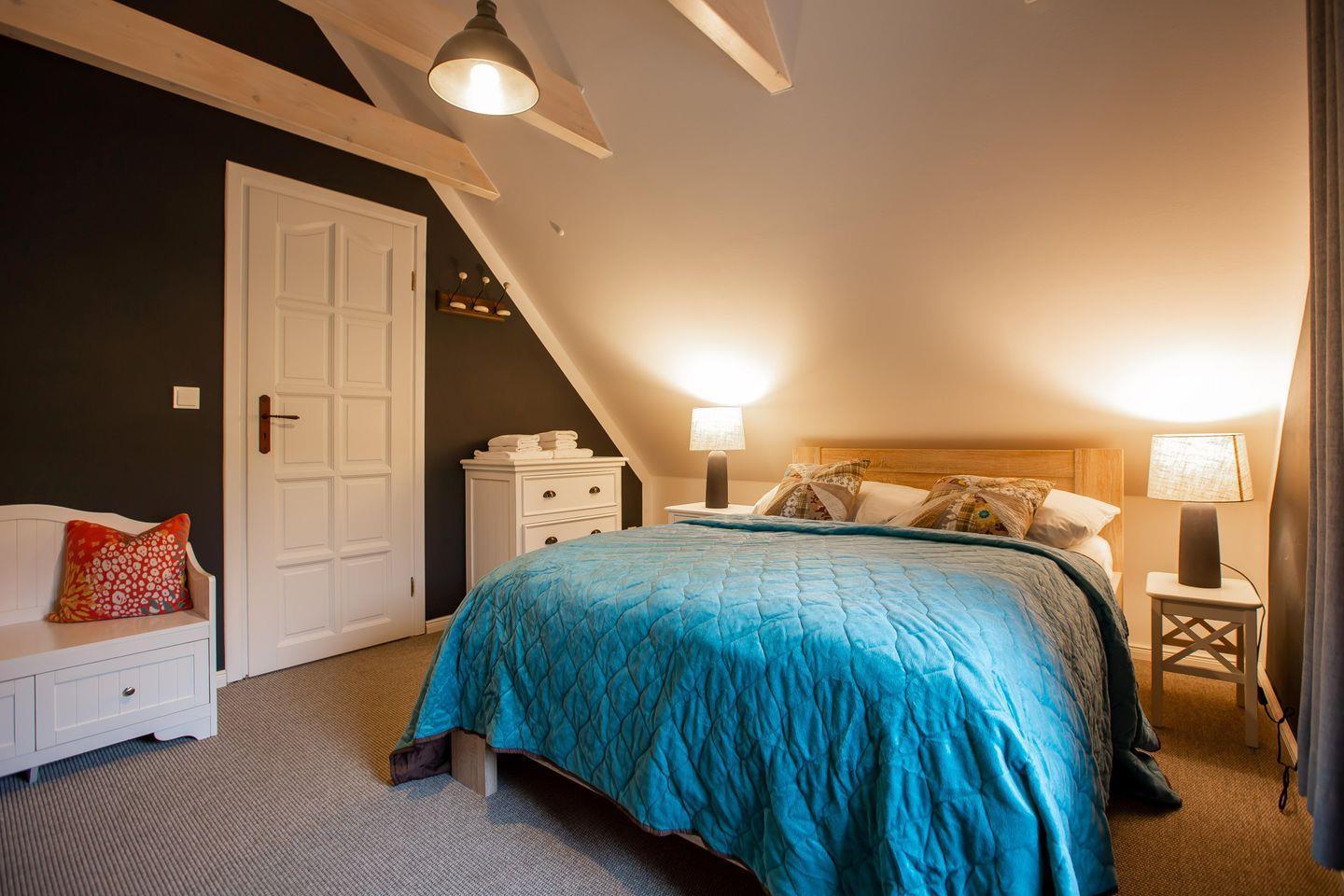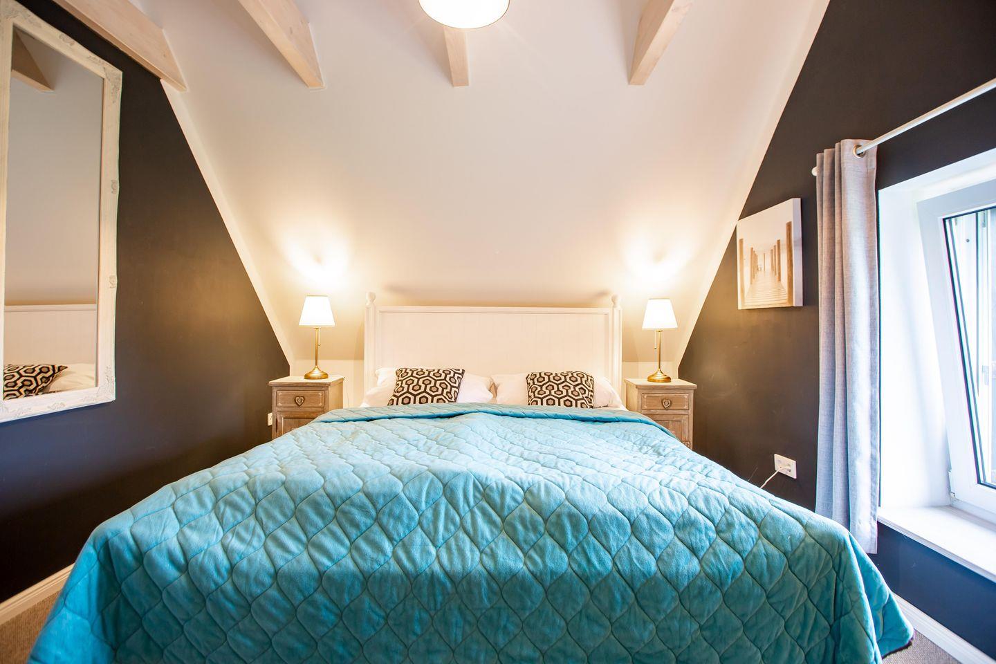 Typisch ländlich mutet dieses tolle Ferienhaus mit seiner hochwertigen Landhaus-Einrichtung, den natürlichen Farben und Materialien sowie den detailverliebten Deko-Elementen an. Der offene Wohn -und Küchenbereich lädt zum kommunikativen Kochen und gemütlichem Klönen auf dem modernen Sofa am Kamin oder in der Veranda ein. Ein gemütliches Schlafzimmer mit einem Doppelbett (180 cm) und ein sehr modernes Bad mit freistehender Badewanne und WC runden das Erdgeschoss ab. Im Obergeschoss erwarten dich zwei weitere Schlafzimmer mit je einem Doppelbett (160 cm und 140 cm). In einem der Schlafzimmer befindet sich ein zusätzliches TV-Gerät. Solltest du doch einmal in deinem Urlaub arbeiten müssen, dann steht dir ein moderner Schreibtisch im hellen Galeriebereich des Dachgeschosses zur Verfügung. Ein zusätzliches kleines Wohlfühl-Badzimmer mit Dusche/WC auf dieser Etage macht den Wohnkomfort perfekt.