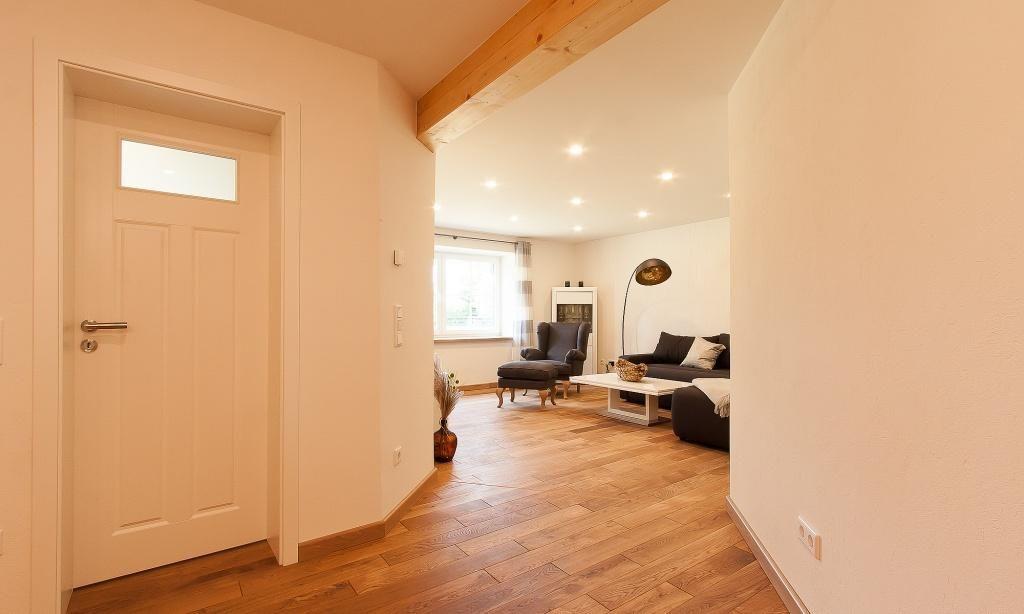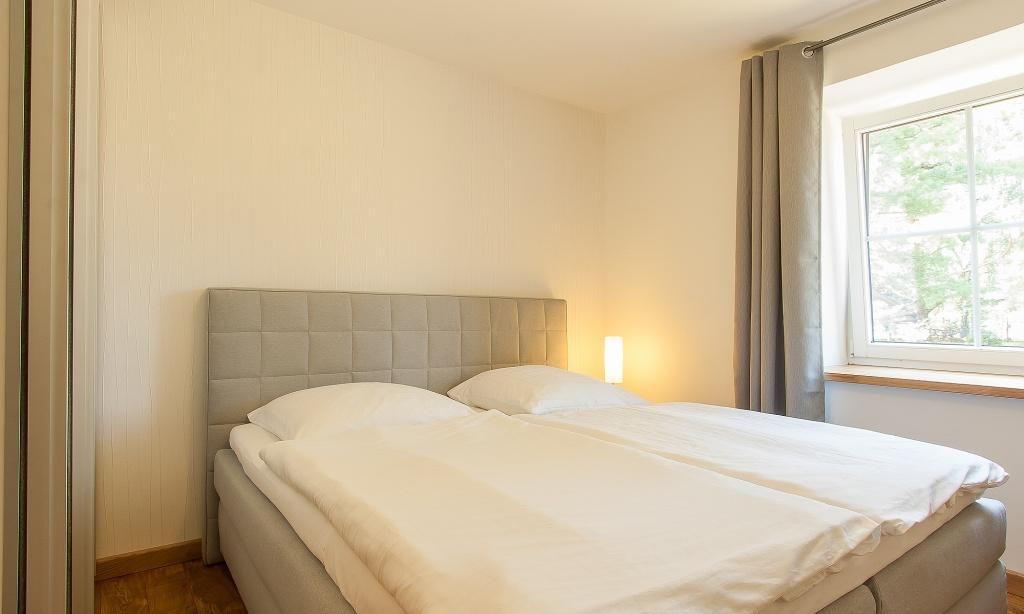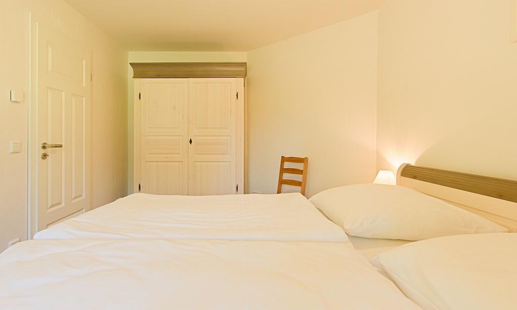 Die Erdgeschosswohnung verfügt über einen großzügigen Wohnraum mit einer gemütlichen Sitzecke. Die hochwertige Küchenzeile und der angrenzende Essbereich separieren sich vom Wohnbereich. Ein Kaminofen sorgt für Behaglichkeit. Weiterhin gibt es zwei Schlafzimmer, die jeweils mit einem Doppelbett ausgestattet sind. Das Tageslicht-Bad mit Dusche/WC und ein Gäste-WC finden außerdem Platz. Ein Terrasse mit Blick in den Garten gehört selbstverständlich zur Wohnung dazu und beschert dir erholsame Stunden.