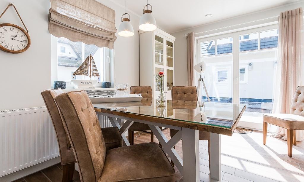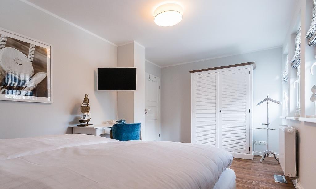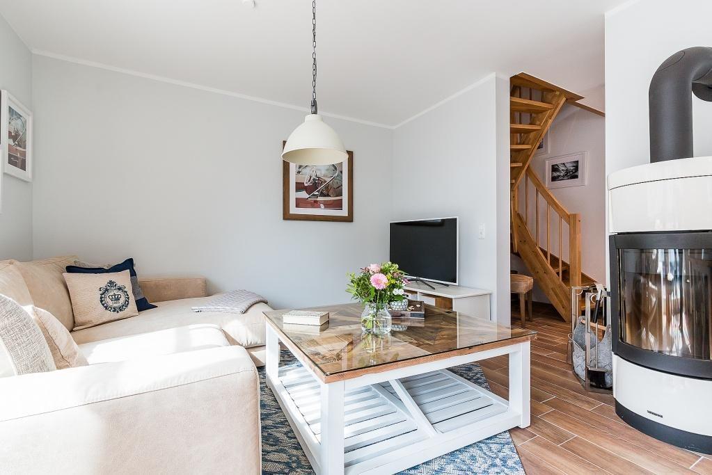 Im Erdgeschoss erwartet dich ein freundlicher, lichtdurchfluteter Wohnraum mit einer gemütlichen Eckcouch am Kaminofen. Die voll ausgestattete Küche und der Essbereich fügen sich unmittelbar in den Raum ein und schaffen einen offenen Wohncharakter. Hier lässt es sich gemeinschaftlich kochen, schlemmen und klönen. Ein Gästebad mit Dusche/WC und Fußbodenheizung sowie der Hauswirtschaftsraum mit einer Waschmaschine befinden sich ebenfalls im Erdgeschoss. Zwei Schlafzimmer, die jeweils mit einem Doppelbett und einem TV ausgestattet sind, befinden sich im Obergeschoss. Auch ein zweites Bad mit Dusche/WC und Fußbodenheizung ist auf dieser Etage vorhanden und sorgt mit der integrierten Sauna für kleine Wellness-Momente zu jeder Jahreszeit.