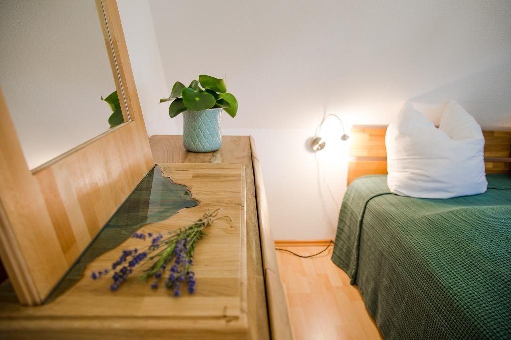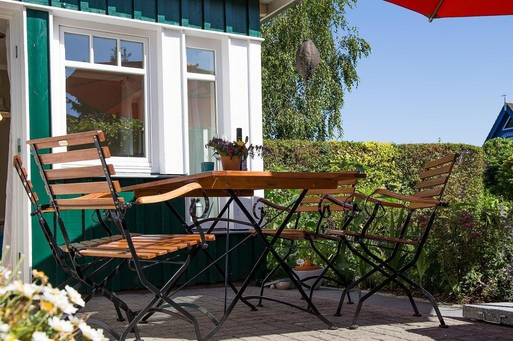 Ruhe und Erholung finden Sie auch auf der Steinterrasse mit hochwertigen Möbeln, Sonnenschirm und professionellem Gasgrill. Die Kräuter zum Kochen befinden sich in dem liebevoll angelegten Blumen- und Kräuterbeet, von dem Sie sich gern bedienen dürfen. Dank der natürlichen Heckenbepflanzung ist das Grundstück vollständig eingefriedet und bietet Ihnen die Privatsphäre, die sich im Urlaub wünschen. Zudem stehen Ihnen ein PKW-Stellplatz und ein abschließbarer Fahrradschuppen zur Verfügung.