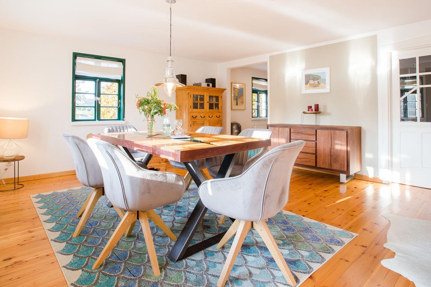 Hier urlauben Sie in einem liebevoll sanierten und traditionellen Reetdachhaus. Der ökologische und nachhaltige Rohstoff ist nicht nur schön anzusehen, sondern sorgt auch für ein optimales Raumklima. Mit viel Liebe zum Handwerk und Detail wurde in Hus Barkenboom ein besonderer und nachhaltiger Wohnstil geschaffen, der sich durch die gesamte Einrichtung des Hauses zieht und Ihnen Ihren Traum vom Ostseeurlaub unter Reet erfüllt. Der lichtdurchflutete Wohn- und Essbereich ist mit seiner Sofalandschaft, der Leseecke und dem selbstdesignten Esstisch Treffpunkt für entspannte Stunden, gemeinsames Essen und geselliges Klönen. Freude kommt auch beim Kochen in der separaten Landhausküche auf, die mit modernen Markengeräten und vielen Kochutensilien ausgestattet ist. Der Flur mit Garderobe und ein Tageslichtbad mit Dusche und WC runden das Erdgeschoss ab. Im Obergeschoss befinden sich die zwei komfortablen Schlafzimmer. Natürliche Materialien wie Holz, harmonische Farben und hochwertige Doppelbetten (160 cm) sorgen für einen erholsamen Schlaf und dienen als geruhsamer Rückzugsort. Ein weiteres Tageslichtbad mit Dusche, Waschmaschine und Trockner befindet sich ebenfalls auf dieser Etage und machen den Wohnkomfort perfekt.