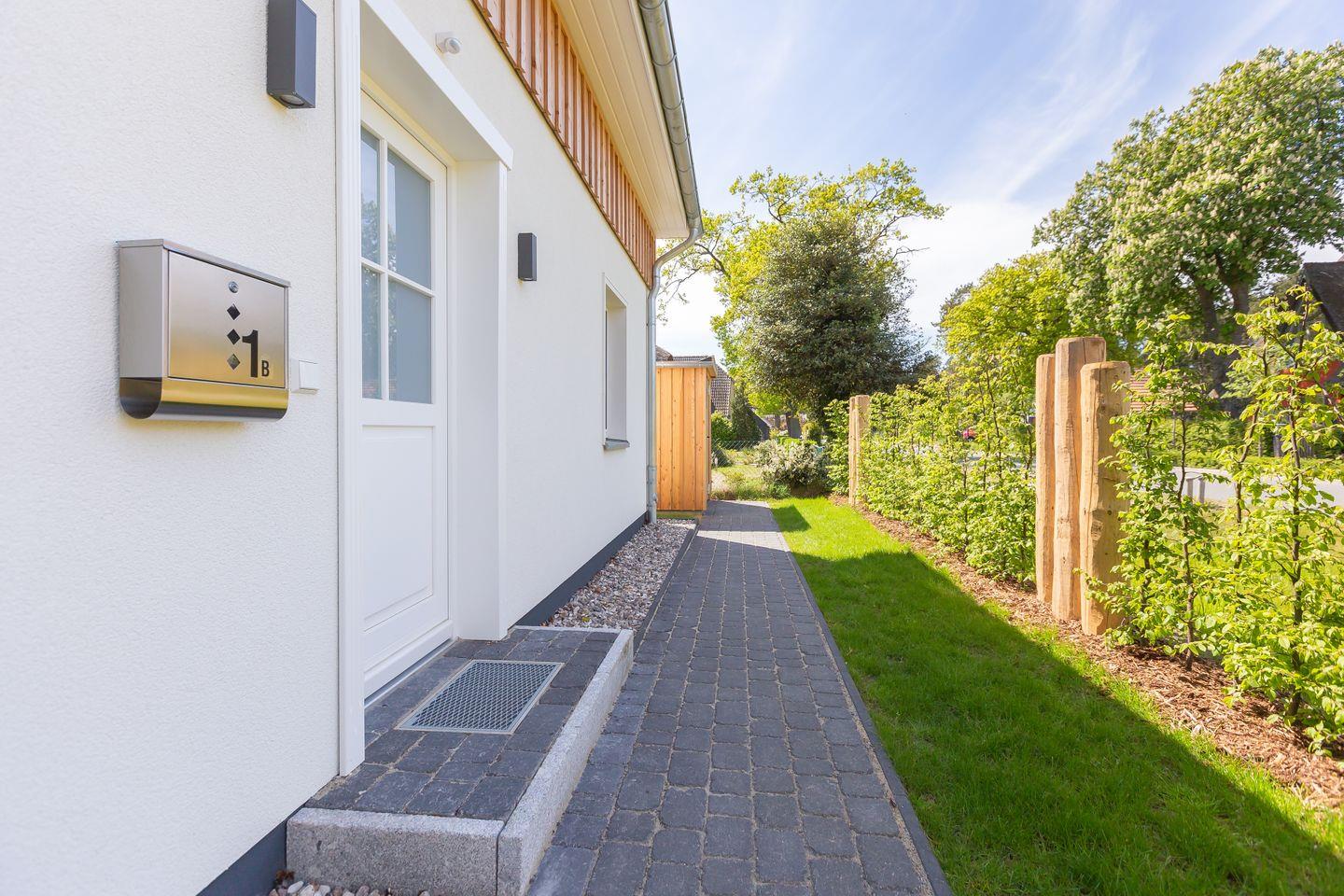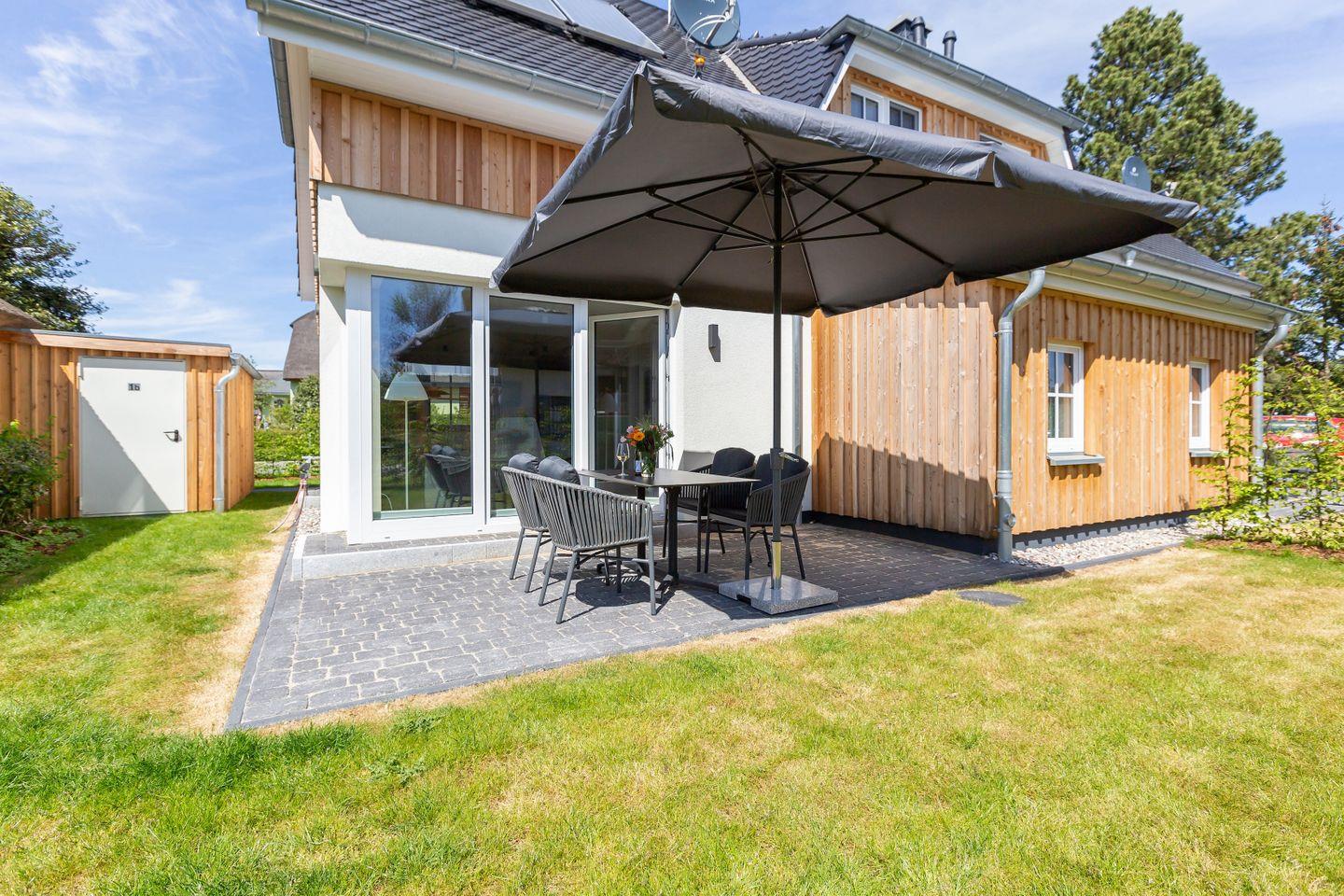 Der Außenbereich begeistert mit einem gepflegten Garten und zugehöriger Steinterrasse, die vor allem in den warmen Sommermonaten nach draußen lockt. Eine E-Bike-Ladestation, zwei PKW- und abschließbare Fahrradstellplätze im Gartenhaus stehen ebenfalls zur Verfügung. So klingt Ferienhausurlaub in einem der schönsten Dörfer der Halbinsel? Finden wir auch und wünschen schon jetzt einen traumhaften Aufenthalt.