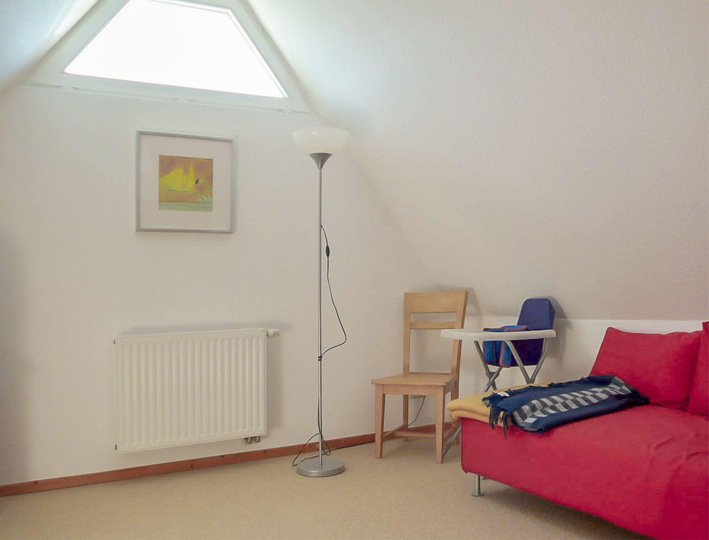 Die Galerie im Dachgeschoss bietet einen weiteren Rückzugsort mit einer Couch, einem Sessel und SAT-TV – ideal für gemütliche Film- oder Leseabende.