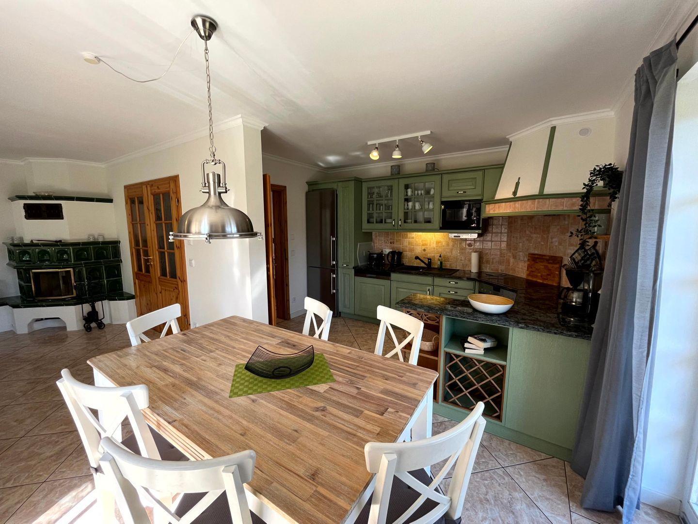 Es erwarten Sie 3 Schlafzimmer, ein Badezimmer mit Dusche und Badewanne sowie ein geräumiges Wohnzimmer mit Kamin. Die komplett ausgestattete Küche, inklusive Geschirrspüler und Mikrowelle, lädt zum Kochen ein. Haustiere sind herzlich willkommen.