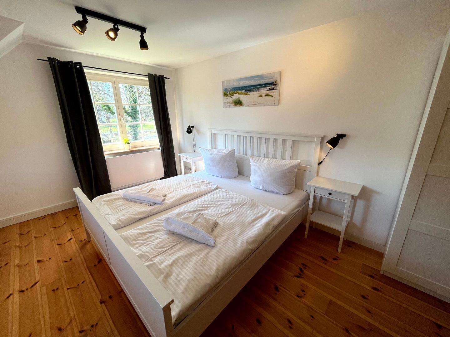einem Doppelbett (160x200cm, Matratze durchgängig)) sowie einem Gäste-WC (WC