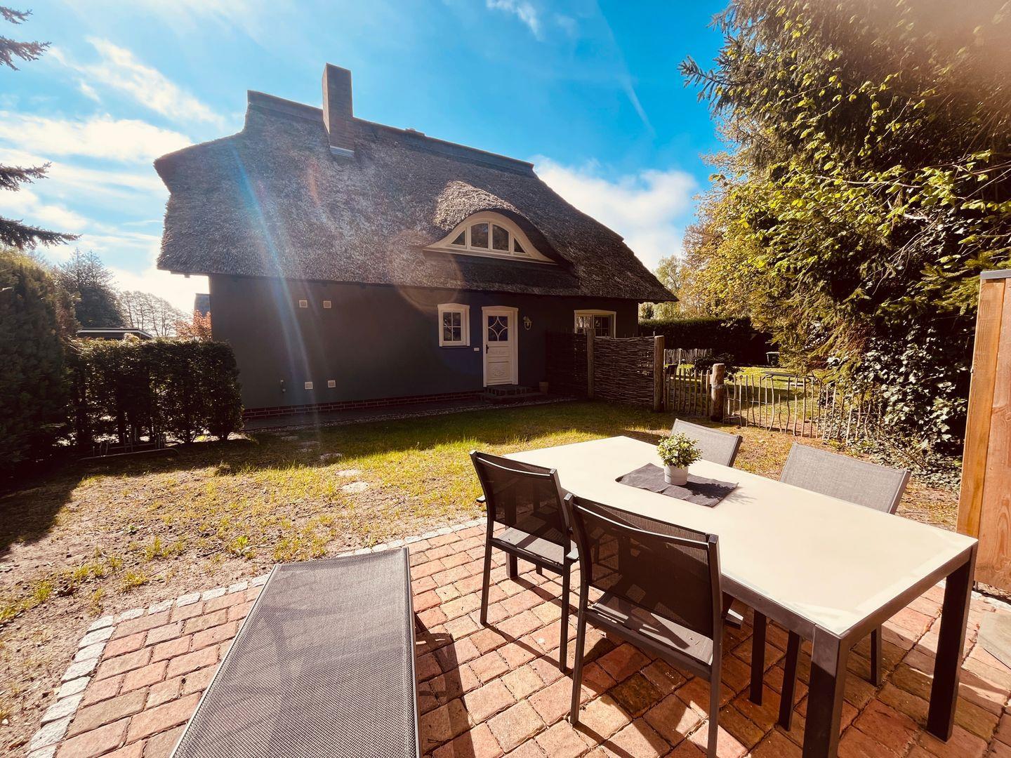 Lasse - FeWo im OG , Reetdach, Terrasse im Garten, Haustiere erlaubt, waldnah