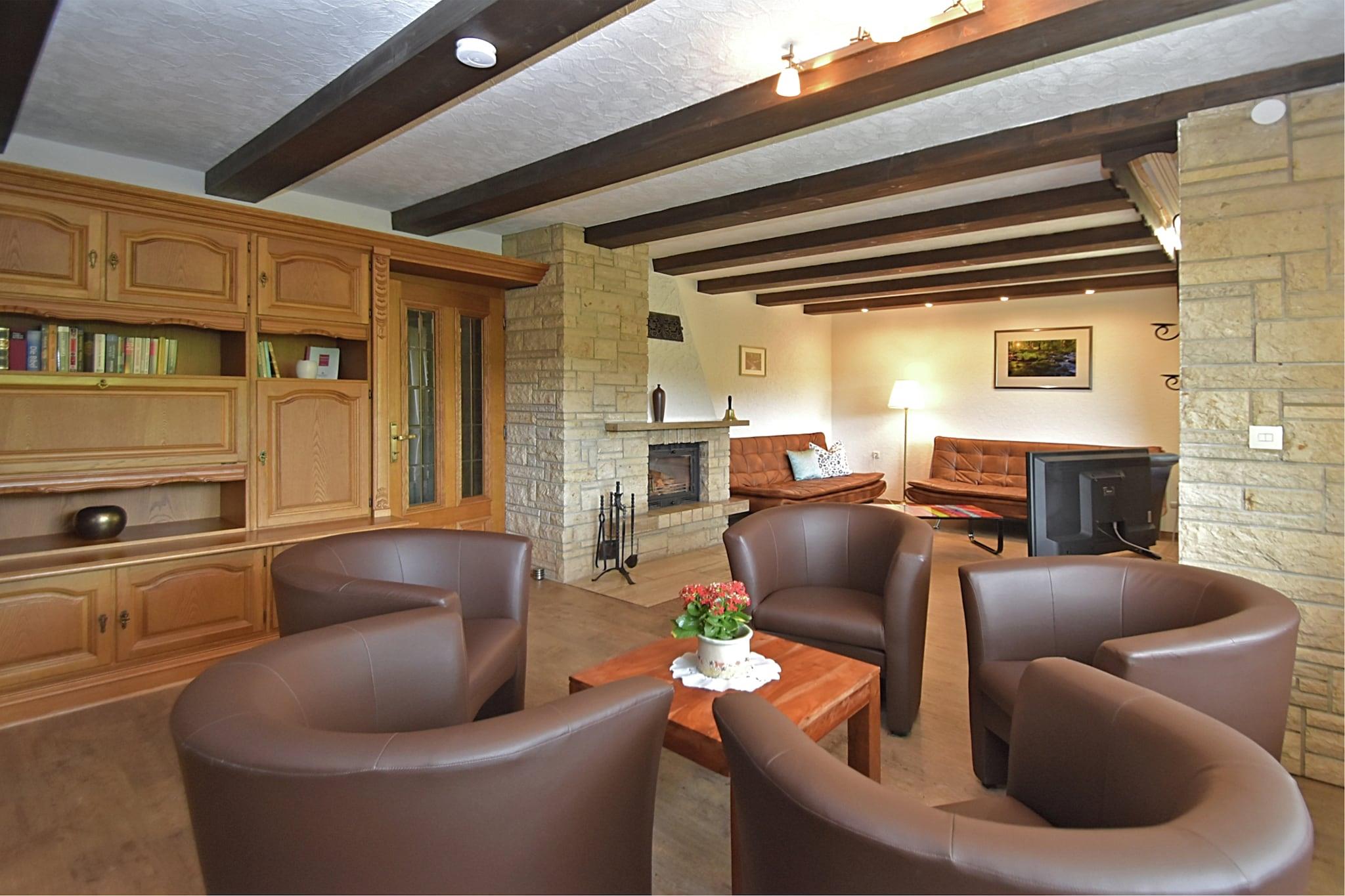 Dette rummelige, fritliggende gruppeferiehus ligger i Wieda, et distrikt i Walkenried, og byder på en betagende udsigt over Harzen-landskabet takket være sin bjergskråning. Huset er ideelt for store grupper, der søger fred og natur. Huset har en privat terrasse med et ugeneret havehus, en hyggelig stue med åben pejs, en balkon og en separat opholdsstue til socialt samvær. Beliggende lige i udkanten af skoven, er det det perfekte udgangspunkt for vandreture gennem Harzen National Park. Godt afmærkede stier fører dig gennem uspoleret natur, grønne enge og duftende skove. Populære destinationer i nærheden omfatter kurbyerne Bad Harzburg og Bad Sachsa, trætopstien, enhjørningshulen og lokale termiske bade med saltlage – perfekt til både aktive og afslappende dage. Bemærk venligst: Dette hjem er ikke egnet til festgrupper som polterabender. Ejeren håndhæver denne regel strengt, og overtrædelser kan resultere i øjeblikkelig opsigelse af dit ophold uden refusion. Dette retræte er beregnet til gæster, der søger ro, natur og kvalitetstid sammen.