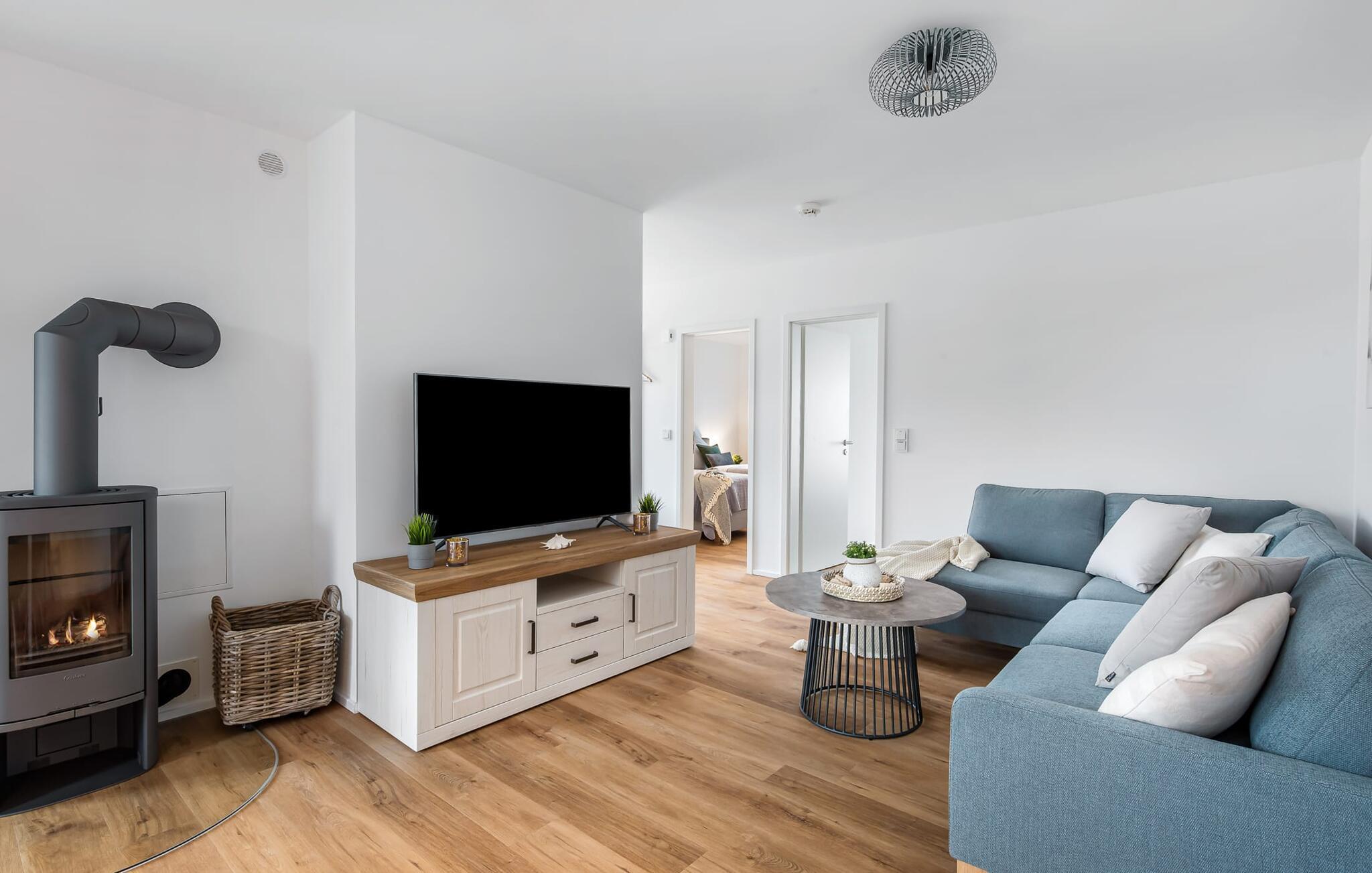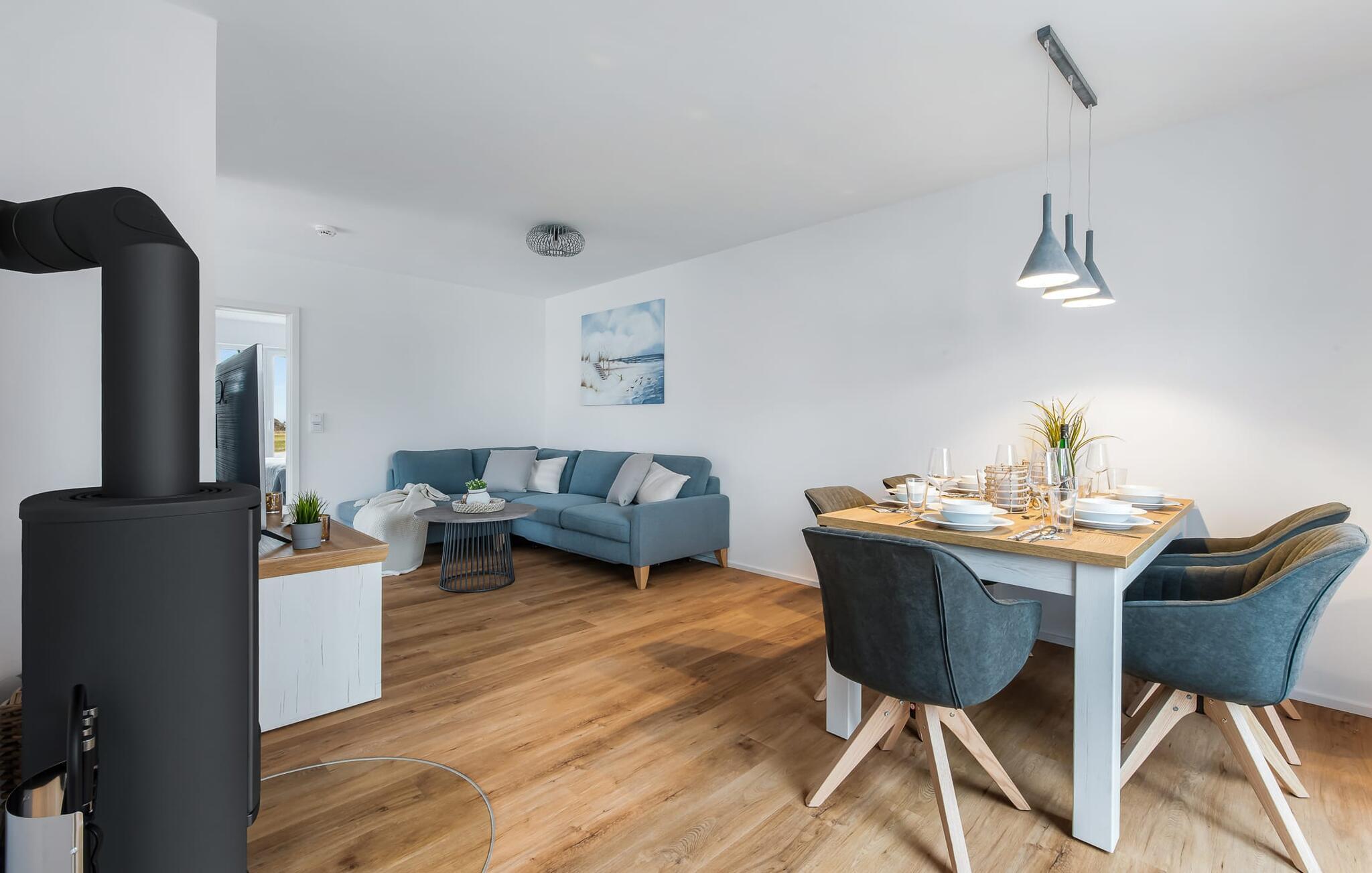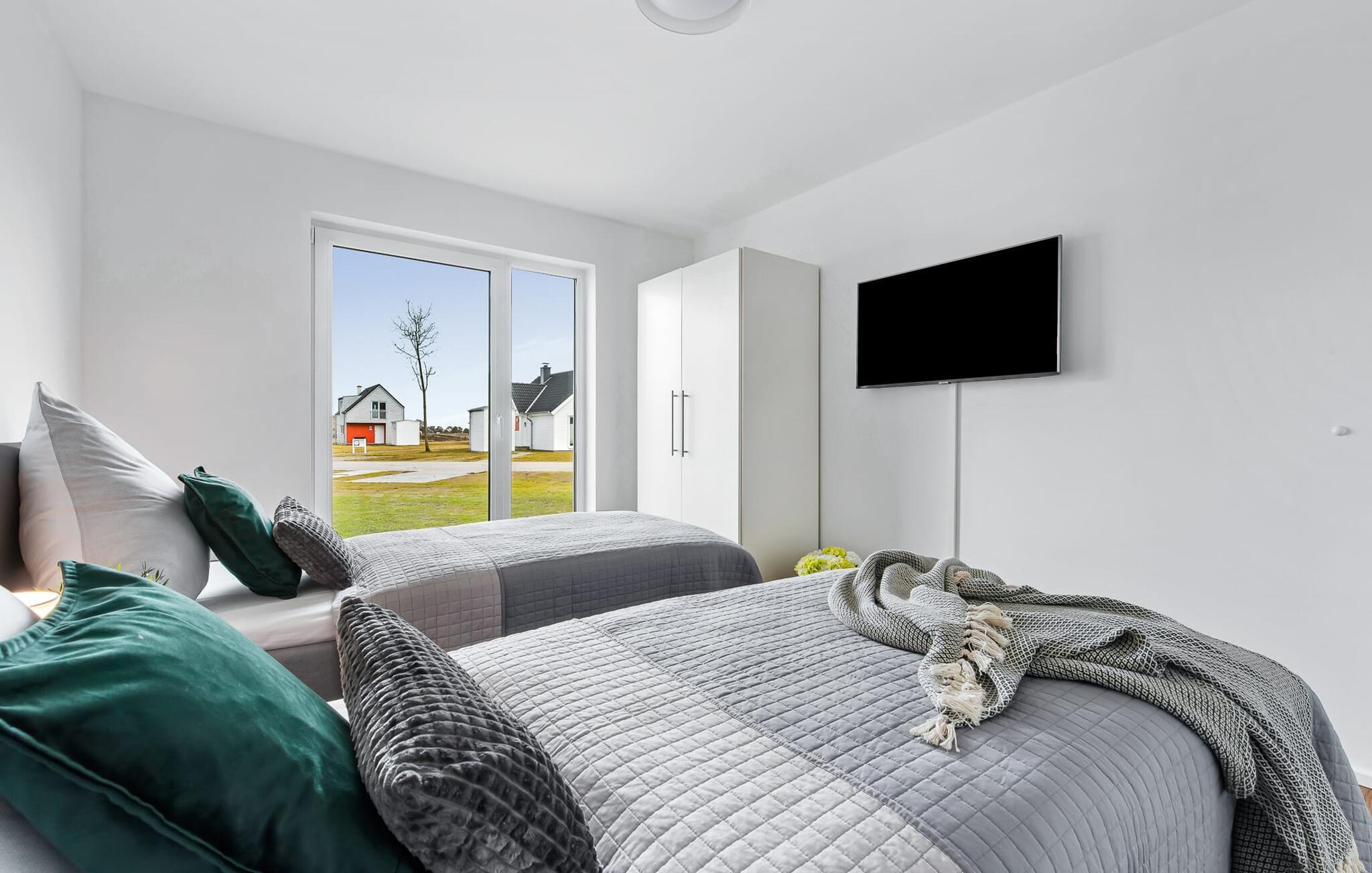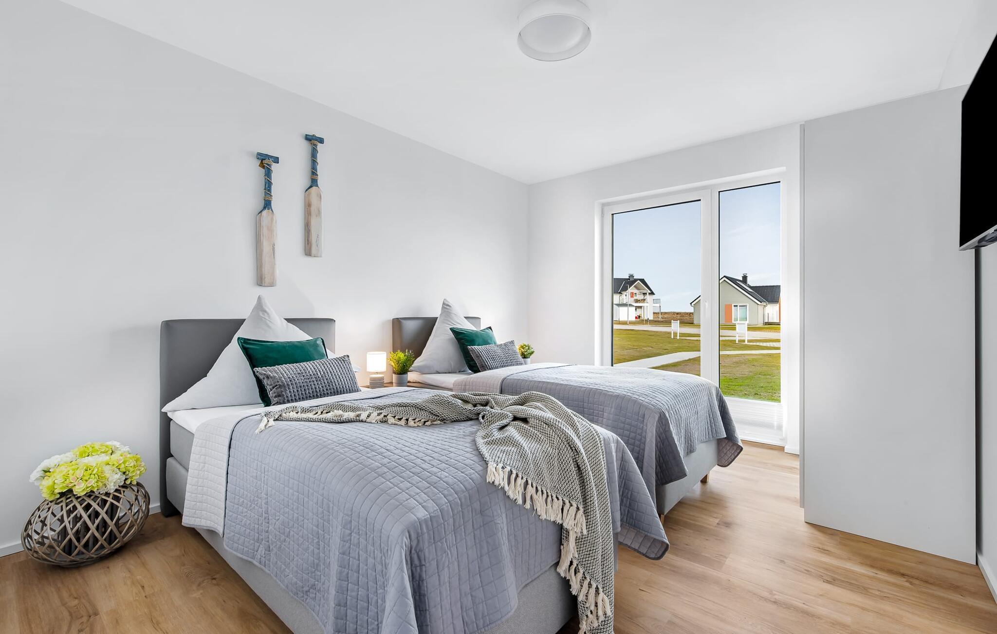Ferie-halvt dobbelthus WIEDEBLICK imponerer med sin umiddelbare nærhed til stranden og Østersøen og er et lille paradis for op til fem personer. Sandstranden Weidefelder med strandstole, en kiosk og en restaurant ligger inden for gåafstand. Feriestunder for hele familien og ikke kun om sommeren! Minigolfbanen med maritimt tema ligger også i umiddelbar nærhed. WIEDEBLICK er designet i en maritim indretningsstil og smelter dermed sammen med sit holstenske, nedertyske navn, Weiter Blick. En gulv-til-loft vinduesfront i den åbne stue/alrum og køkken lader alt skinne i skarpt lys og indretningen emmer af hygge. Den komfortable sofa kan omdannes til en soveplads for én person på ingen tid overhovedet, og pejsen og magenta-tv sikrer en hygge-pause selv i den køligere sæson. Madlavning er en fornøjelse i det veludstyrede køkken, og at spise den tilberedte mad på den tilstødende terrasse er dobbelt så behageligt. En anden terrasse er placeret lige ved siden af husets indgang og sol er garanteret hele dagen lang. Begge soveværelser er indrettet med tv og boksmadrasser. I har valget mellem en dobbeltseng eller to enkeltsenge. Uanset hvad I vælger, vil I sove godt i begge. Badeværelset med brusebad i gulvniveau og infrarød kabine lader intet tilbage at ønske. Wellness elskere kan slappe vidunderligt af, hvad enten det er efter en dag på stranden eller efter en lang gåtur i dårligt vejr. Parkeringspladsen lige foran huset sikrer også feriekomfort. Det aflåselige cykelskur er også ideelt, da det kan rumme mere end bare cykler. Og for virkelig at nyde WIEDEBLICKEN, bør I også planlægge en cykeltur i dette smukke område. Vores favoritsted: en lang gåtur på Weidefelder Strand, uanset hvornår på året... Bemærk venligst: OstseeResort Olpenitz er meget populært, og der bygges fortsat i parken. Ikke desto mindre kan I se frem til en 5-stjernet standard og et førsteklasses ophold. Byggeaktiviteterne kommer ikke til at forstyrre jer på ferien, og derfor gives der ikke yderligere afslag i prisen.