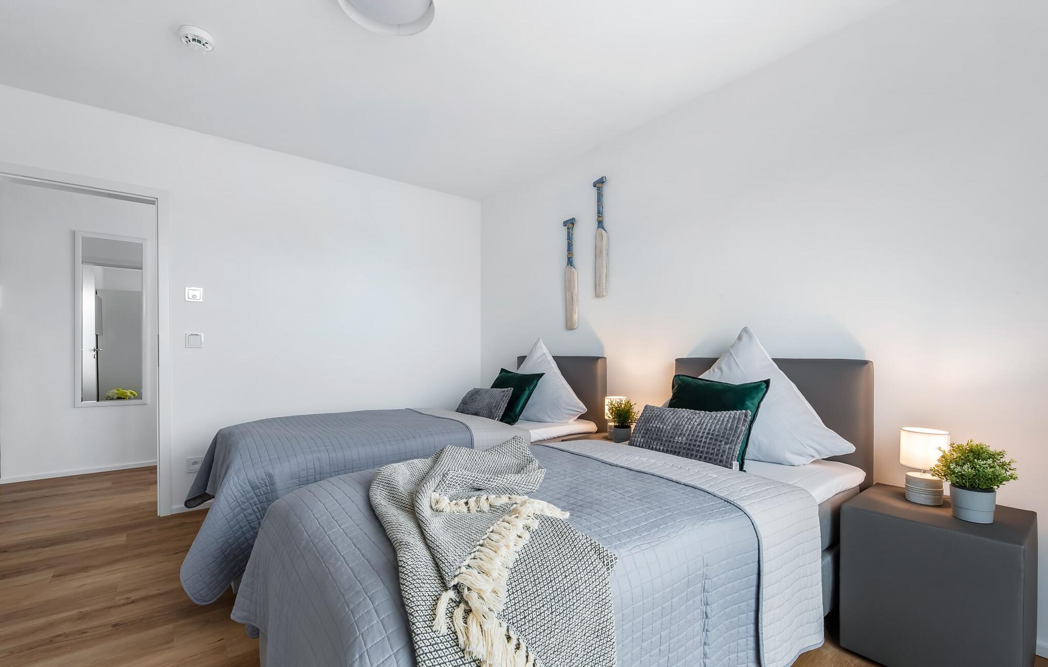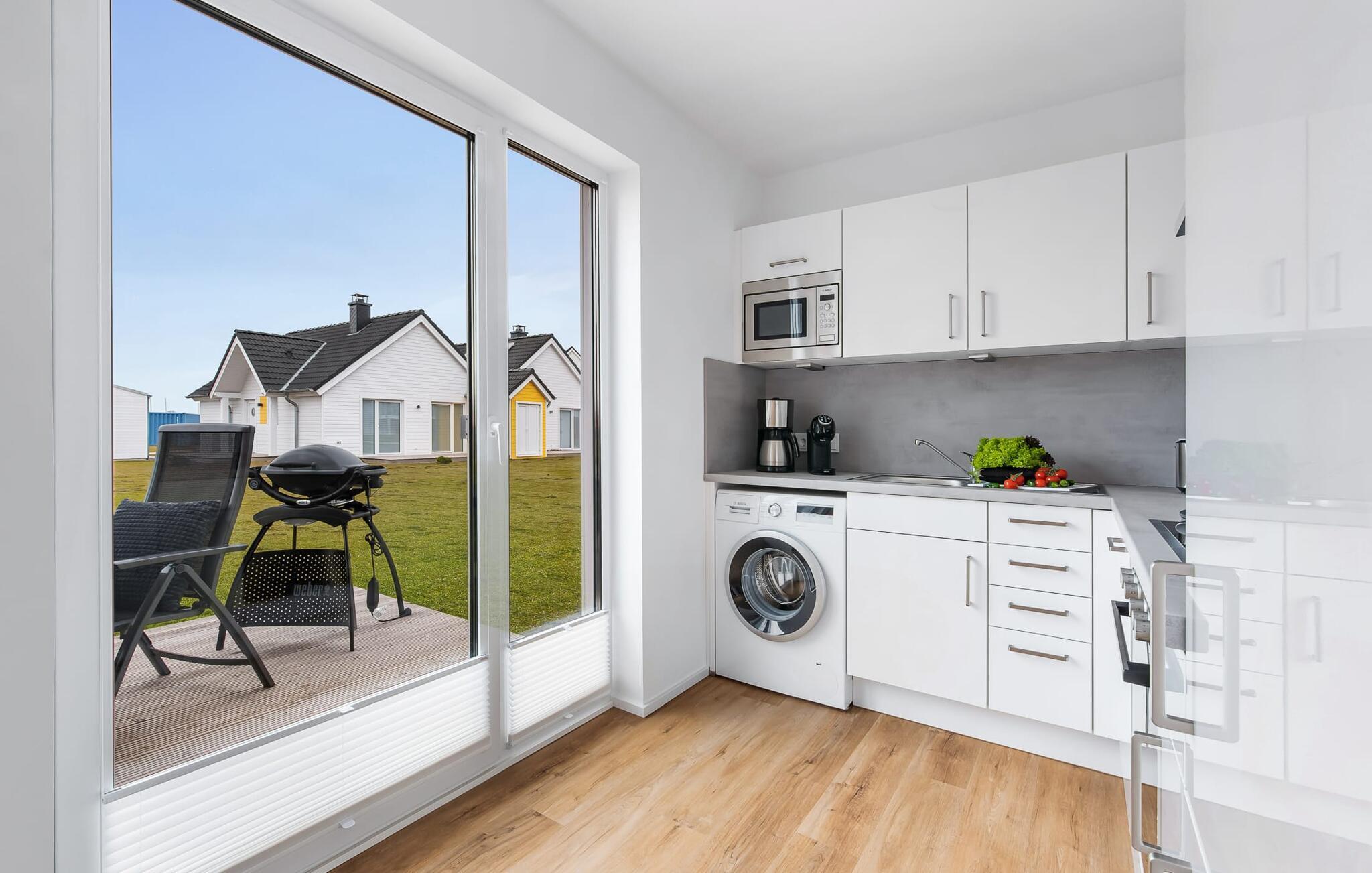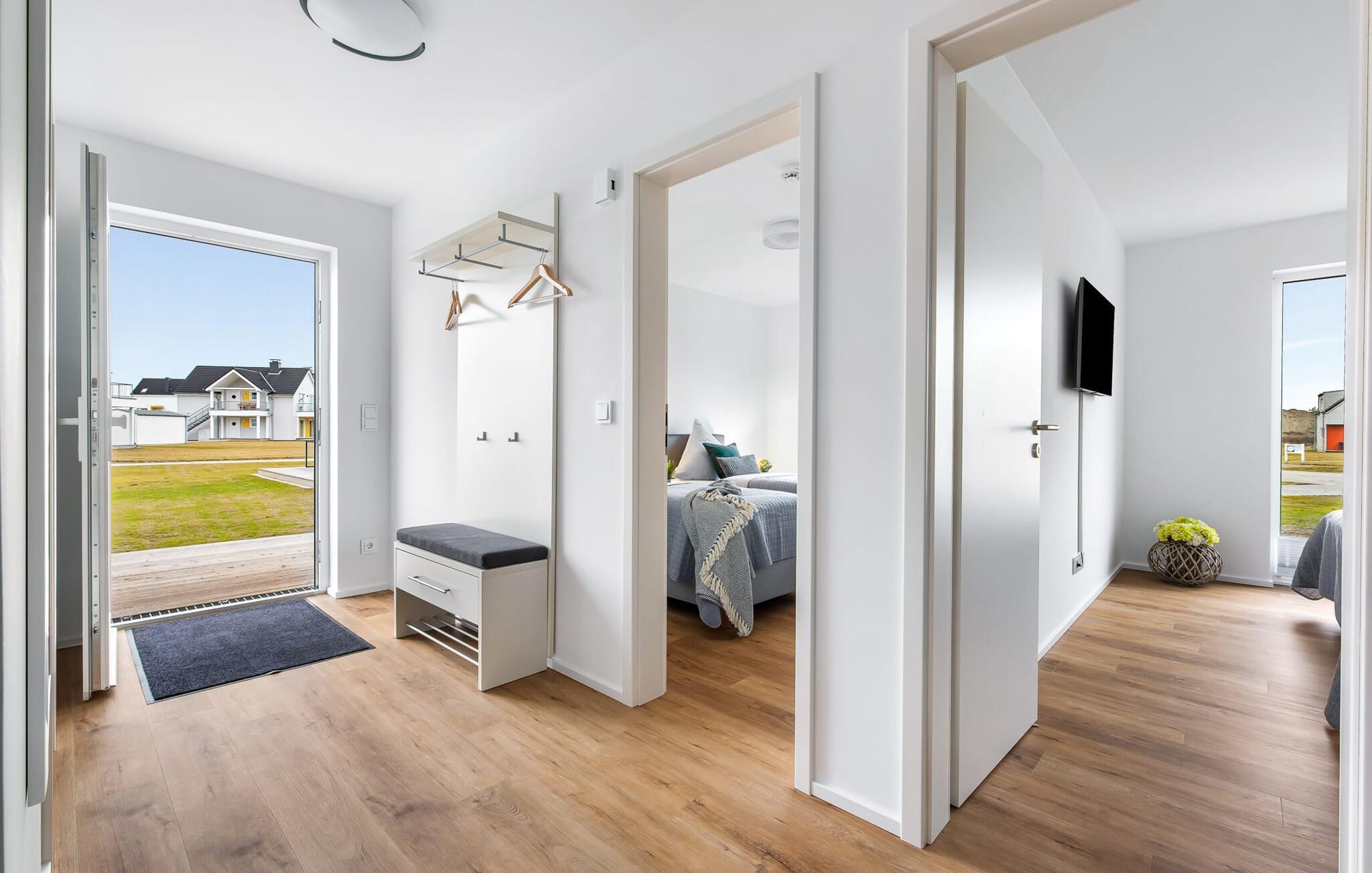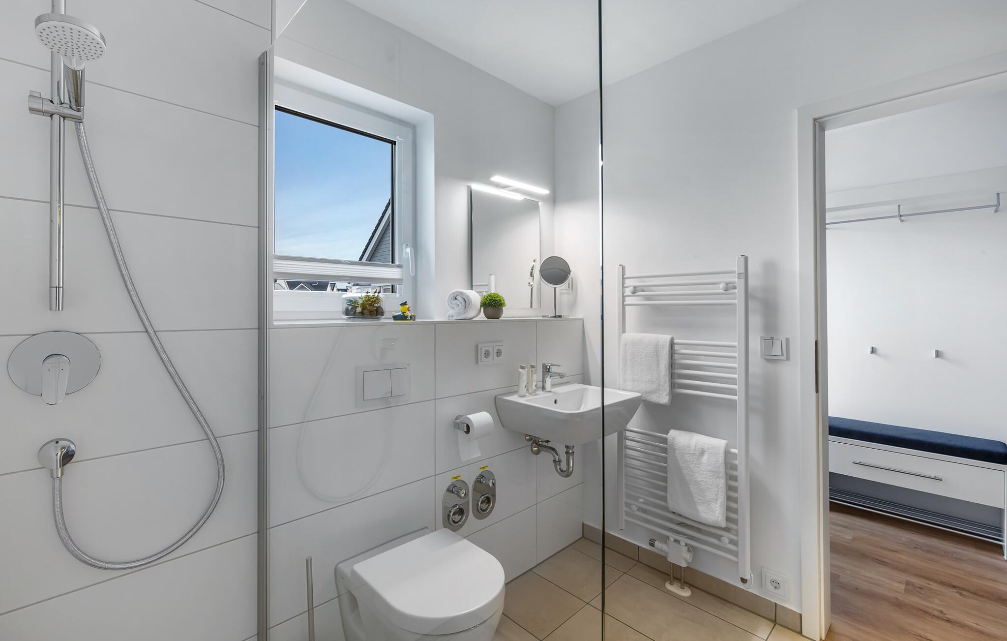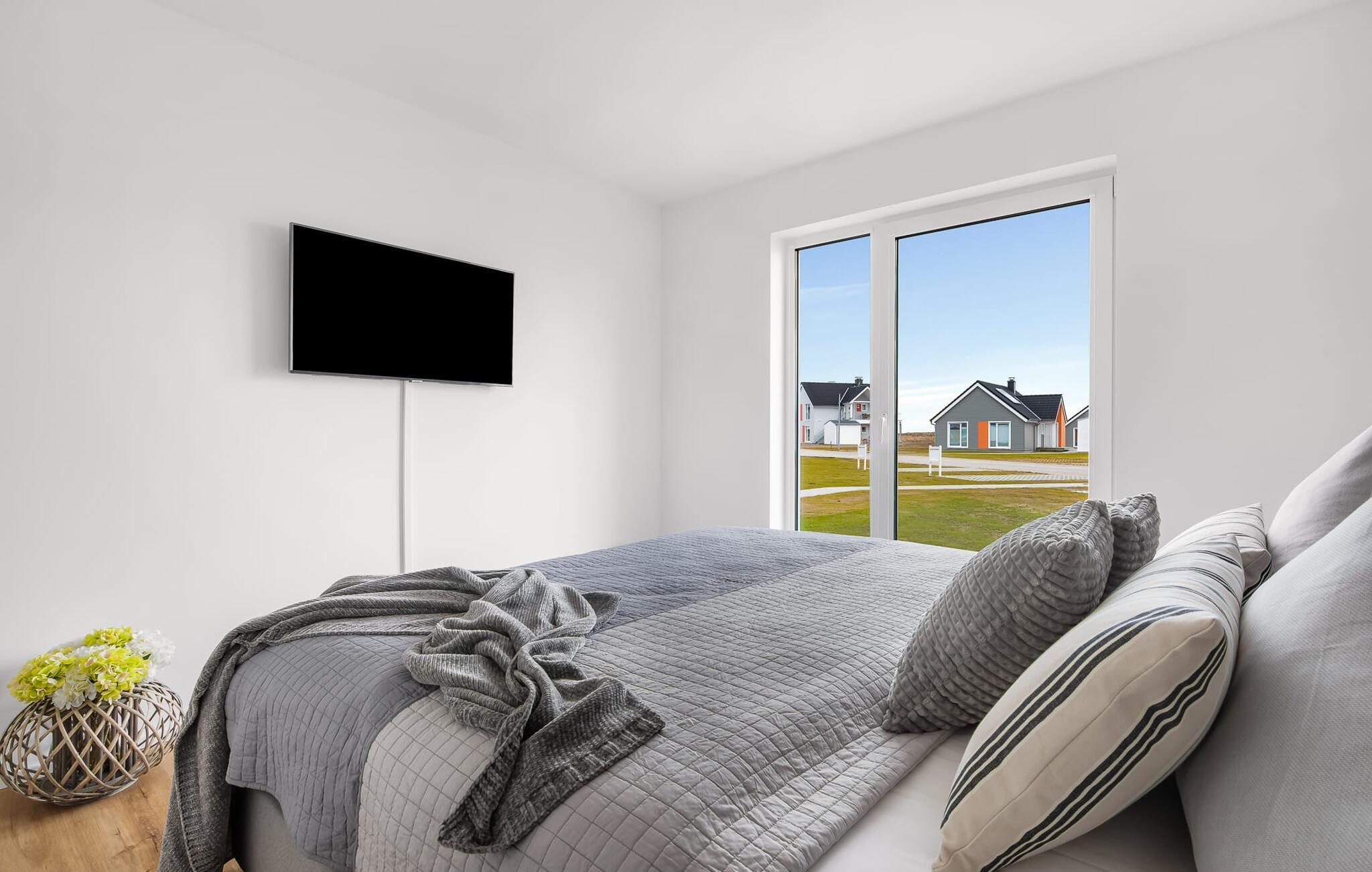 Ferie-halvt dobbelthus WIEDEBLICK imponerer med sin umiddelbare nærhed til stranden og Østersøen og er et lille paradis for op til fem personer. Sandstranden Weidefelder med strandstole, en kiosk og en restaurant ligger inden for gåafstand. Feriestunder for hele familien og ikke kun om sommeren! Minigolfbanen med maritimt tema ligger også i umiddelbar nærhed. WIEDEBLICK er designet i en maritim indretningsstil og smelter dermed sammen med sit holstenske, nedertyske navn, Weiter Blick. En gulv-til-loft vinduesfront i den åbne stue/alrum og køkken lader alt skinne i skarpt lys og indretningen emmer af hygge. Den komfortable sofa kan omdannes til en soveplads for én person på ingen tid overhovedet, og pejsen og magenta-tv sikrer en hygge-pause selv i den køligere sæson. Madlavning er en fornøjelse i det veludstyrede køkken, og at spise den tilberedte mad på den tilstødende terrasse er dobbelt så behageligt. En anden terrasse er placeret lige ved siden af husets indgang og sol er garanteret hele dagen lang. Begge soveværelser er indrettet med tv og boksmadrasser. I har valget mellem en dobbeltseng eller to enkeltsenge. Uanset hvad I vælger, vil I sove godt i begge. Badeværelset med brusebad i gulvniveau og infrarød kabine lader intet tilbage at ønske. Wellness elskere kan slappe vidunderligt af, hvad enten det er efter en dag på stranden eller efter en lang gåtur i dårligt vejr. Parkeringspladsen lige foran huset sikrer også feriekomfort. Det aflåselige cykelskur er også ideelt, da det kan rumme mere end bare cykler. Og for virkelig at nyde WIEDEBLICKEN, bør I også planlægge en cykeltur i dette smukke område. Vores favoritsted: en lang gåtur på Weidefelder Strand, uanset hvornår på året... Bemærk venligst: OstseeResort Olpenitz er meget populært, og der bygges fortsat i parken. Ikke desto mindre kan I se frem til en 5-stjernet standard og et førsteklasses ophold. Byggeaktiviteterne kommer ikke til at forstyrre jer på ferien, og derfor gives der ikke yderligere afslag i prisen.
